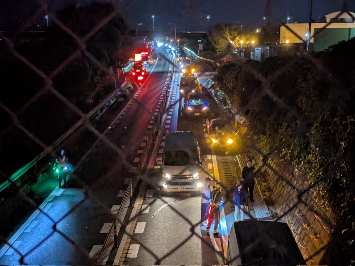 仙台南部道路、事故の影響で山田〜大野田まで全く動きませんな。現場検証やってますんで復旧の見通しが立ちません pic.twitter.com/fMW1cBweA9