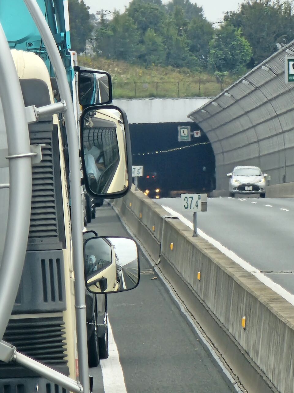 『なんか、外環三郷のトンネルで火事なんですけど。完全に止まってます』