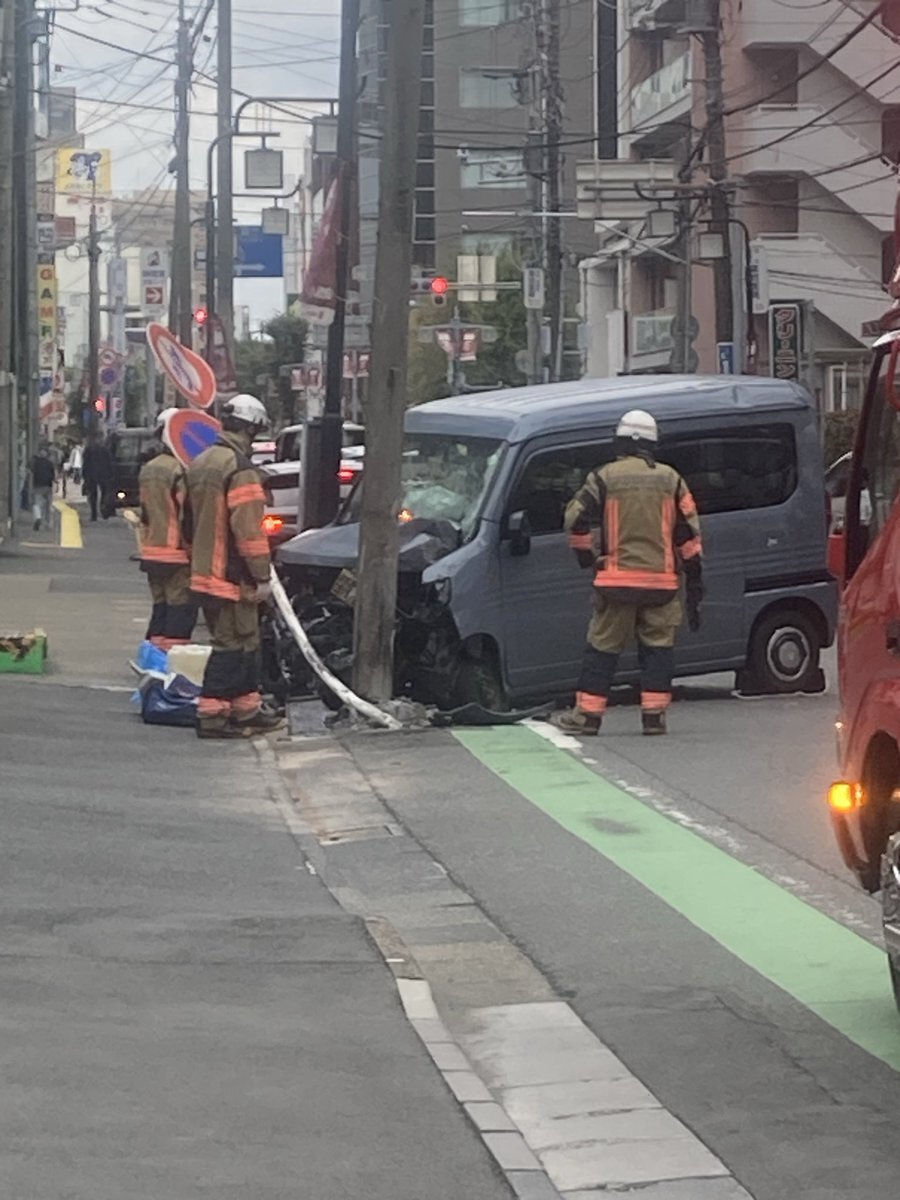 【現場の状況】#交通情報 旧中山道 埼玉県さいたま市浦和区常盤1丁目付近 軽乗用車フロント大破事故で一部交通規制10月14日 #埼玉 #浦和