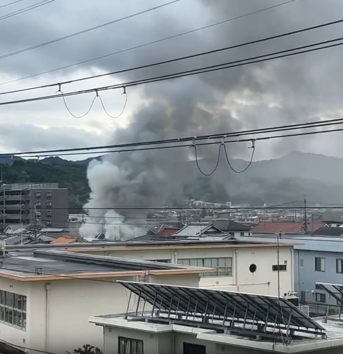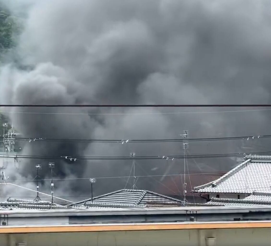 ◇10月16日 10時09分大津市石山寺三丁目付近で建物火災が発生し、消防車等が出動しています。バス停_京阪_石山幼稚園前 南東 133m付近