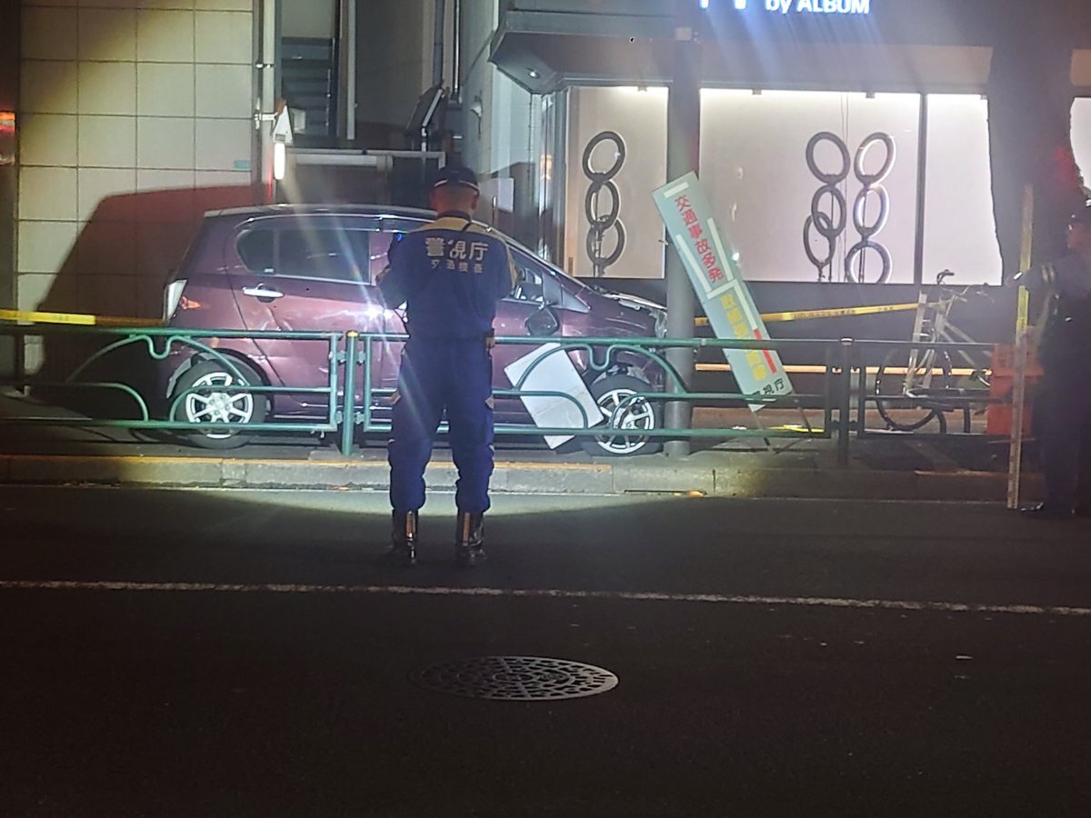 中野通り沿い学習塾がある歩道付近に軽乗用車が突っ込んだ模様