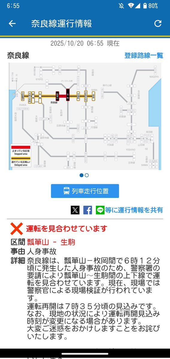 その後、運転の乱れがありそうです。近鉄をご利用の皆様お気をつけ下さい。— ゆうこりん (ぴよぴよ) (@2z945ZkZJqRa1df) October 19, 2025
