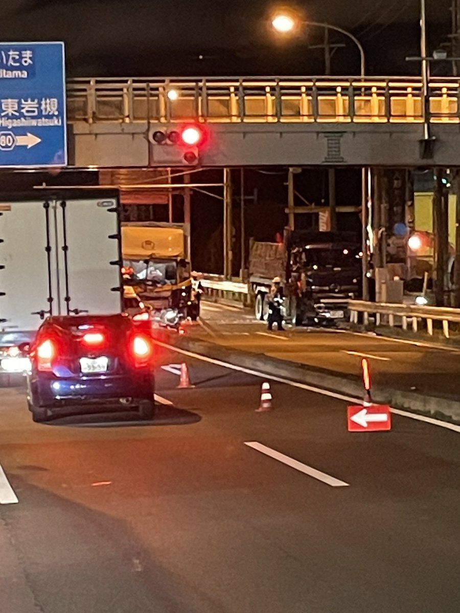 【現場の様子】#交通情報 #国道16号 外回り 埼玉県さいたま市岩槻区南平野 天下一品付近交差点 車線塞ぐ大型トラックとダンプ衝突事故で一時通行止め渋滞4月10日 #渋滞 #通行止 #埼玉