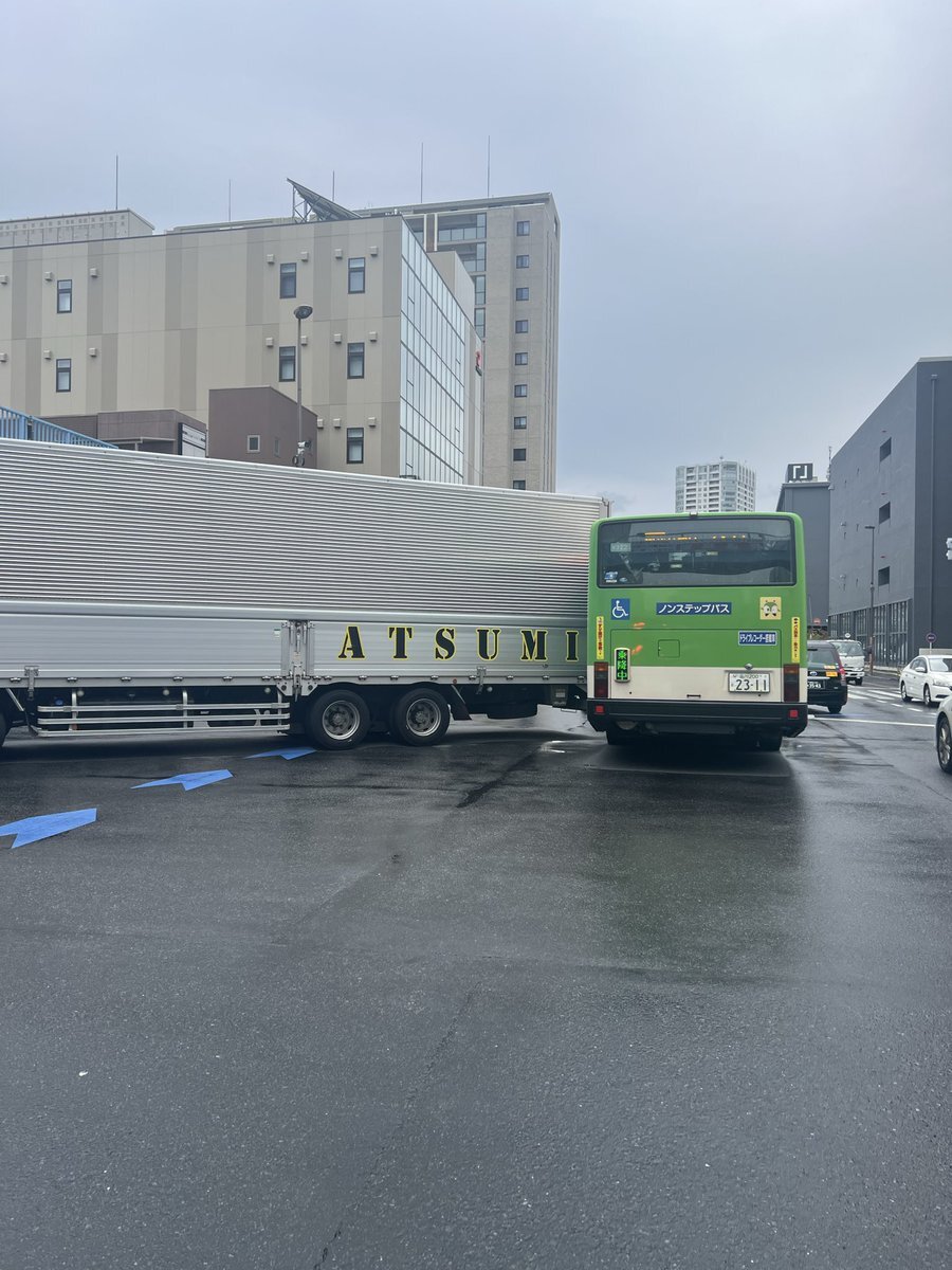 新東海トラック×都バス接触事故 pic.twitter.com/lKT7OH8pjt