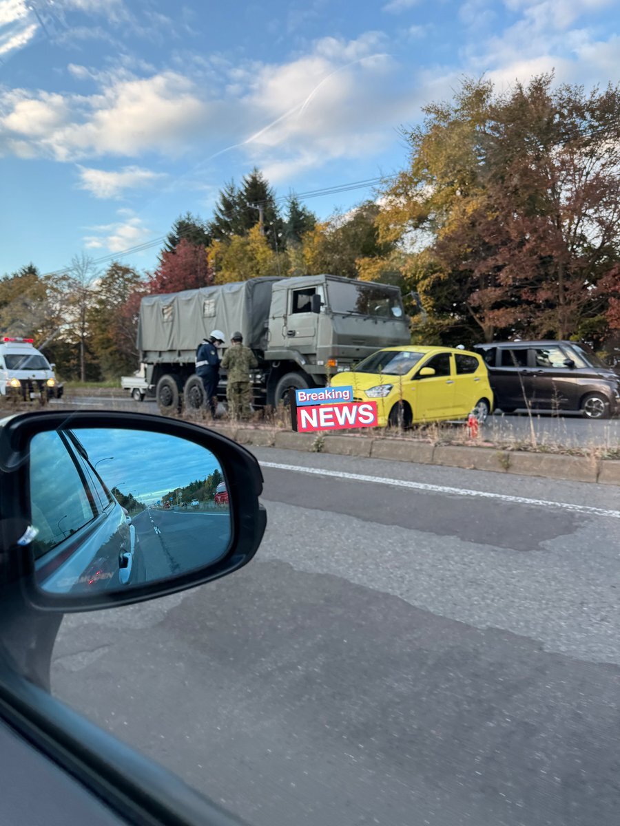 【現場の様子】#交通情報 国道36号線 北海道恵庭市恵み野付近 自衛隊車両と軽乗用車の衝突事故で一時交通規制10月24日 #北海道 #恵庭 #自衛隊