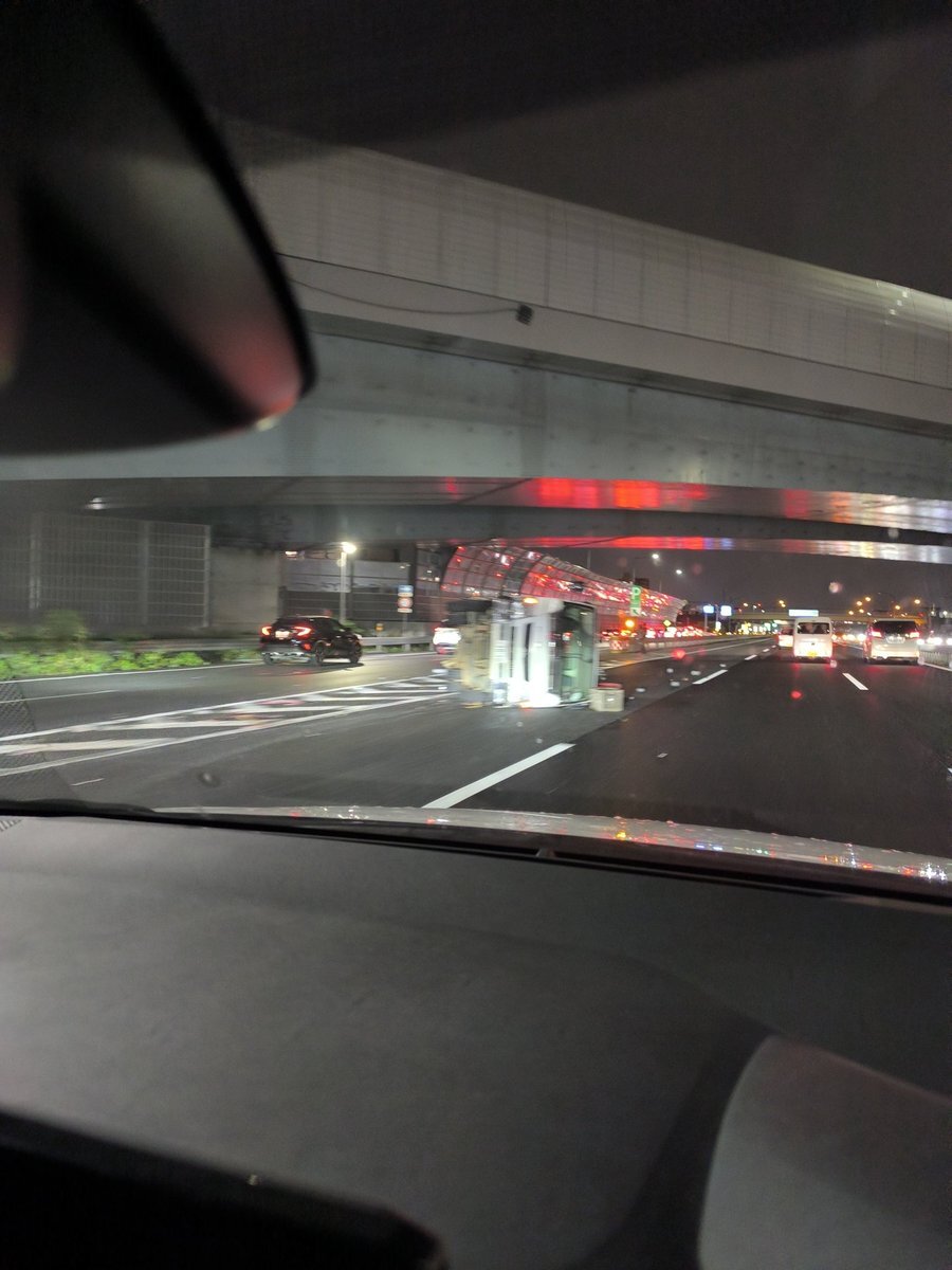 京葉道路下り、京葉市川、分岐突っ込み横転事故 pic.twitter.com/MBsErrNwr5