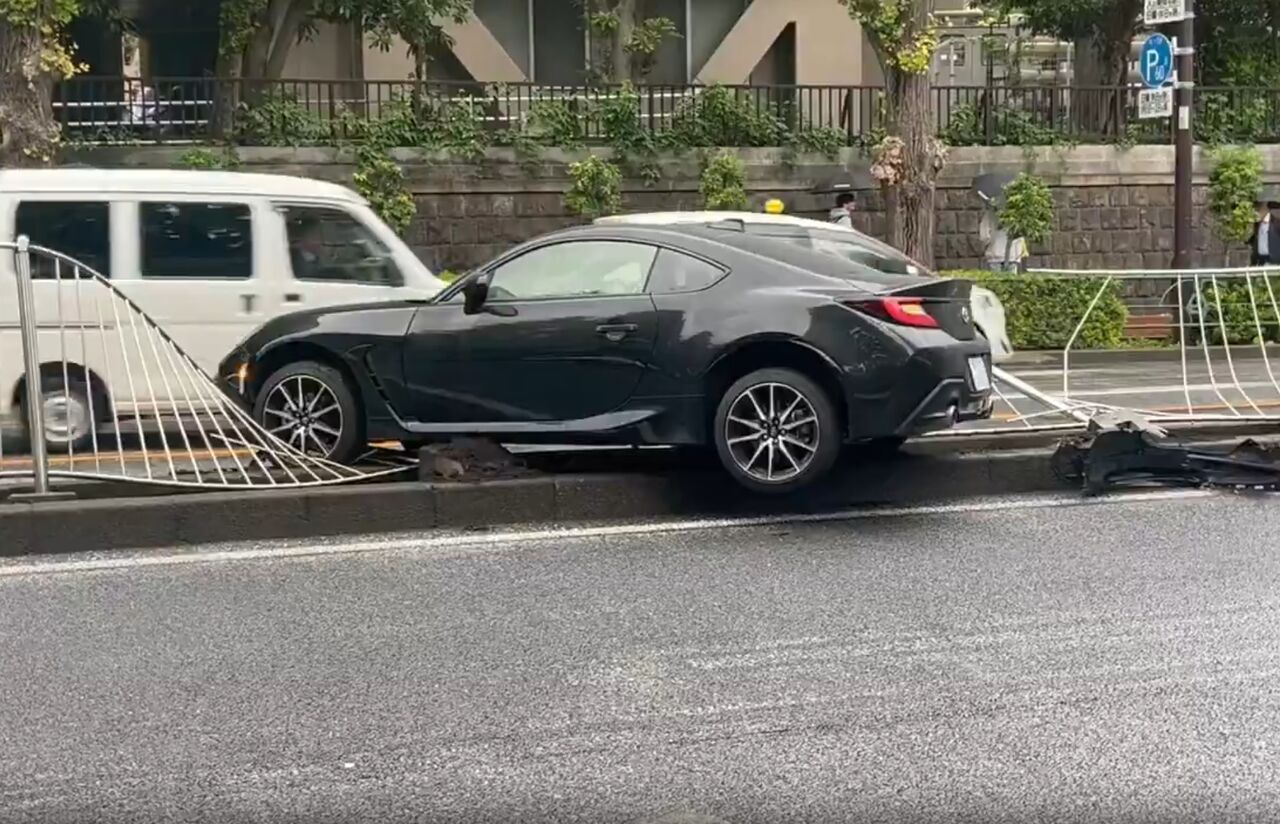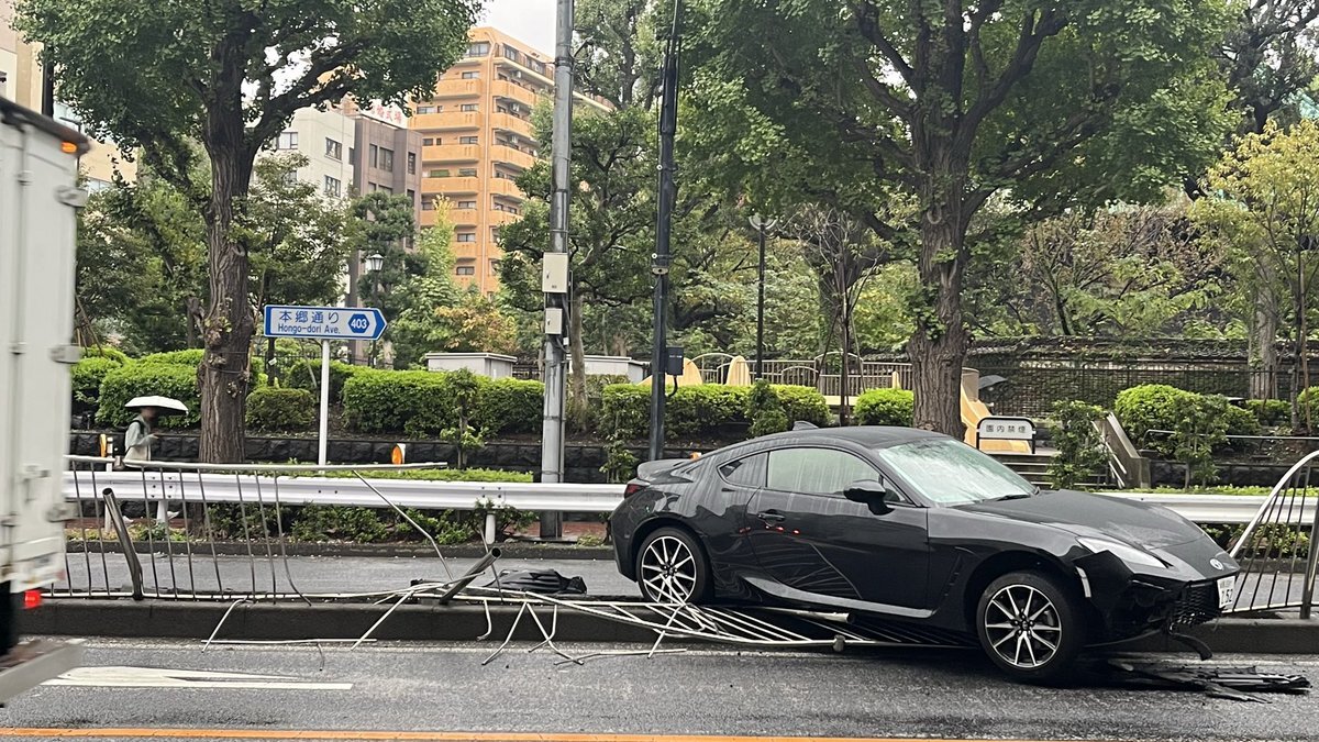 【現場の様子】#交通情報 本郷通り 東京都文京区湯島1丁目付近 スポーツカー中央分離帯突っ込む事故で一部交通規制10月25日 #文京区 #湯島 #御茶ノ水 #秋葉原