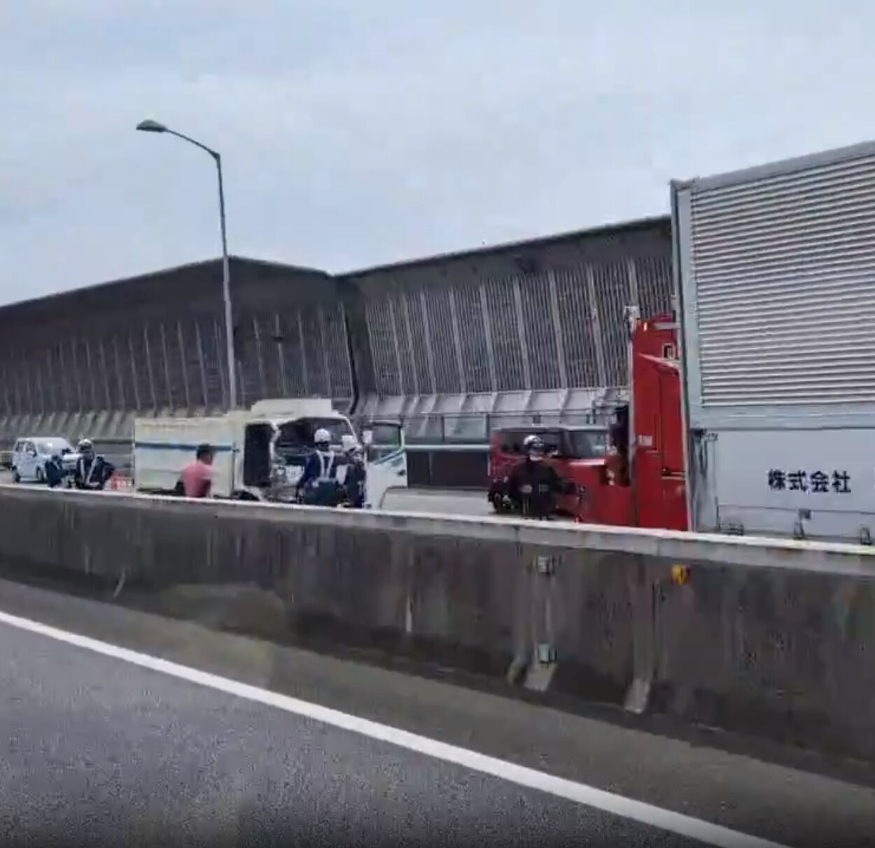 伊勢湾岸道下り、大府付近で、大型と4トンの事故。たぶんあと2時間はかかるやろなぁ pic.twitter.com/kNSlq2Ay58