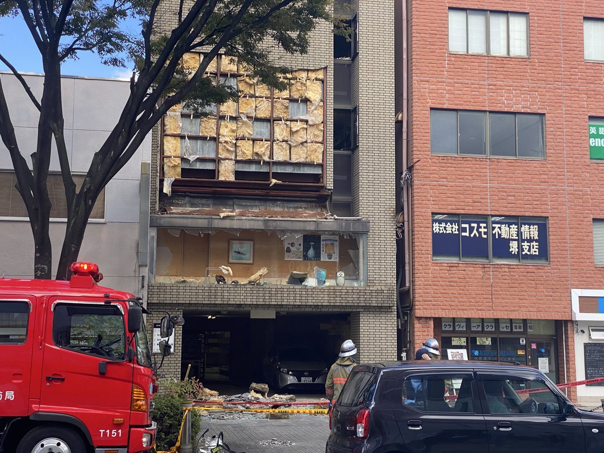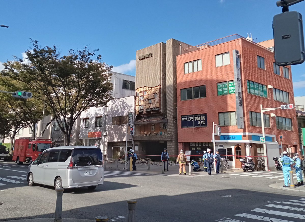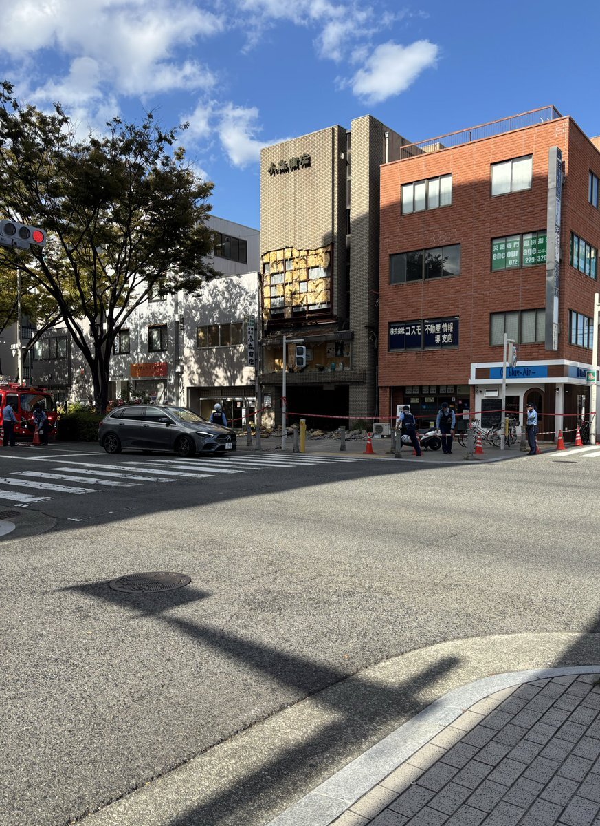 大小路で建物の外壁落下してた。#堺市消防局 #消防車 #堺市 pic.twitter.com/yBMAnSzQVt