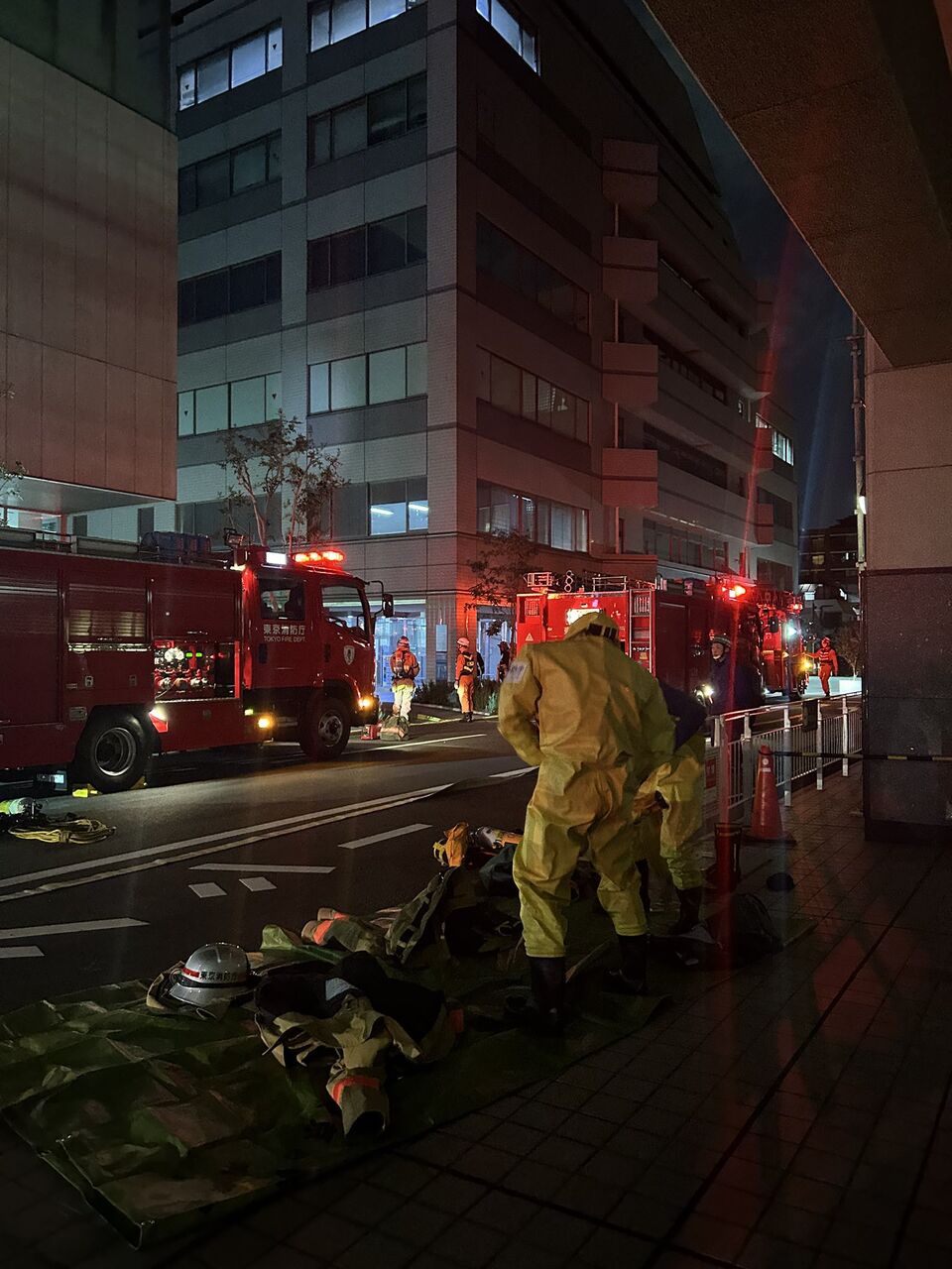 出火元は薬学部1号館。避難指示が出され、学生さん30人くらい?理系はこんな時間まで勉強されてるのですね所用で出たら消防車がいっぱい集まって来た。ちょい化学っぽい臭いがする。火や煙は目視できません