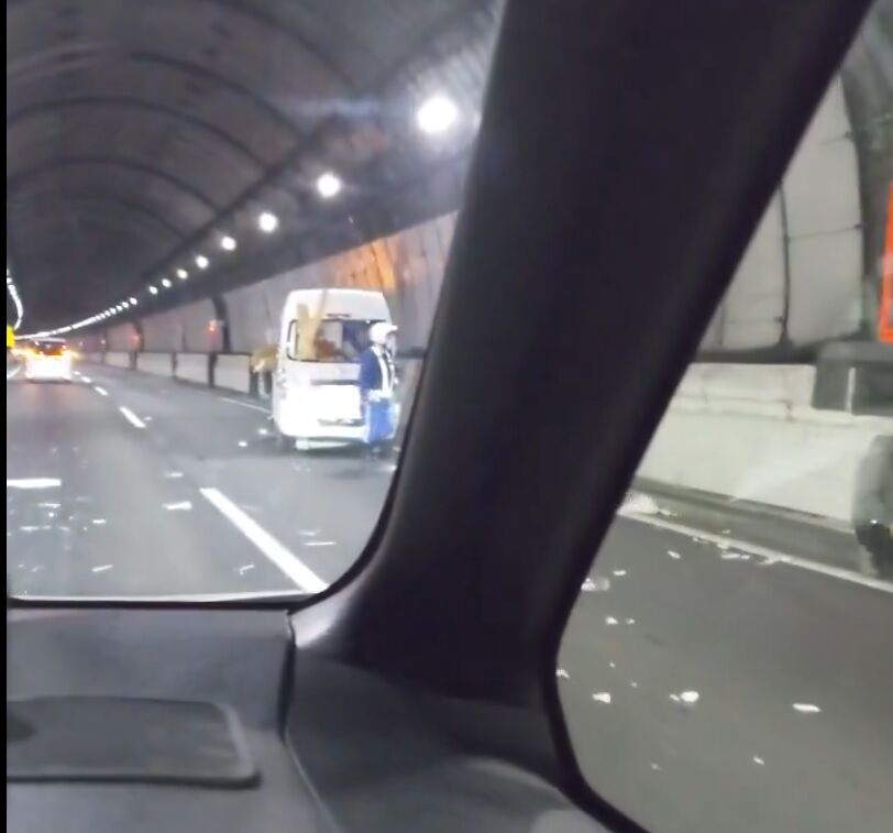タイヤバースト?渋滞してなくてよかったけど、タイヤ傷まなかったかな?心配だ!#小仏トンネル#小仏トンネル事故#単独事故#事故#またかよ pic.twitter.com/gr3GmhMg8k