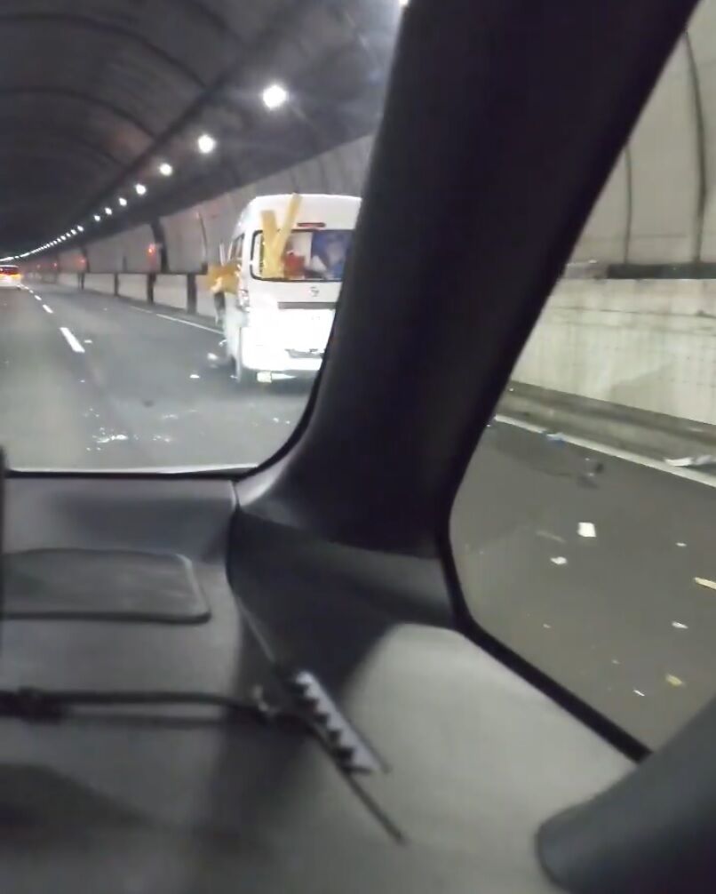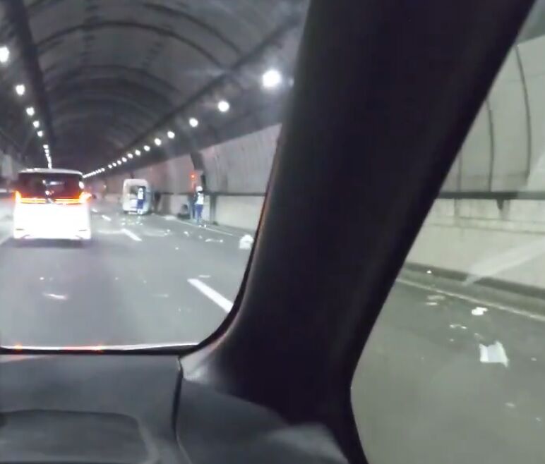 2回連続出撃時小仏トンネル事故だわ〜破片が散乱〜どうやったらこんな単独事故起こすのかな?