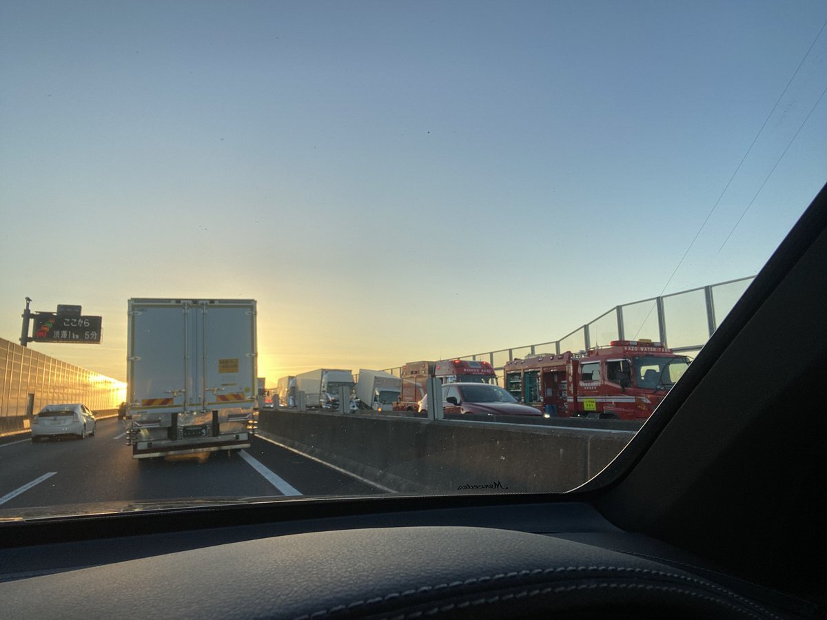 『圏央道の渋滞に巻き込まれてまだ埼玉…………(ノД`)シクシク💦💦多重衝突事故だって』
