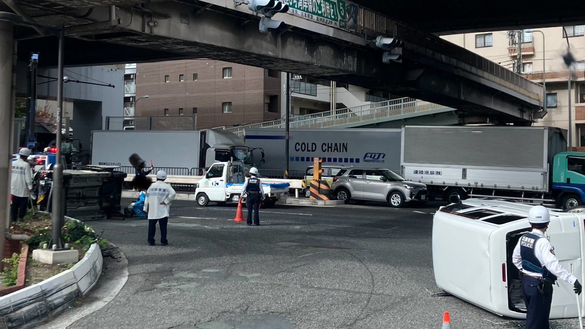 『一体どうしたら車がひっくり返るん?神戸☀︎深江の国道2号で大渋滞。すげー迷惑』