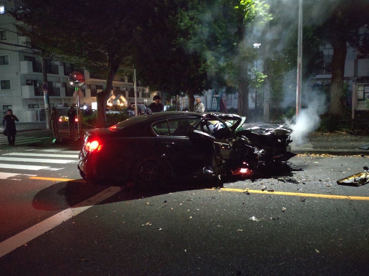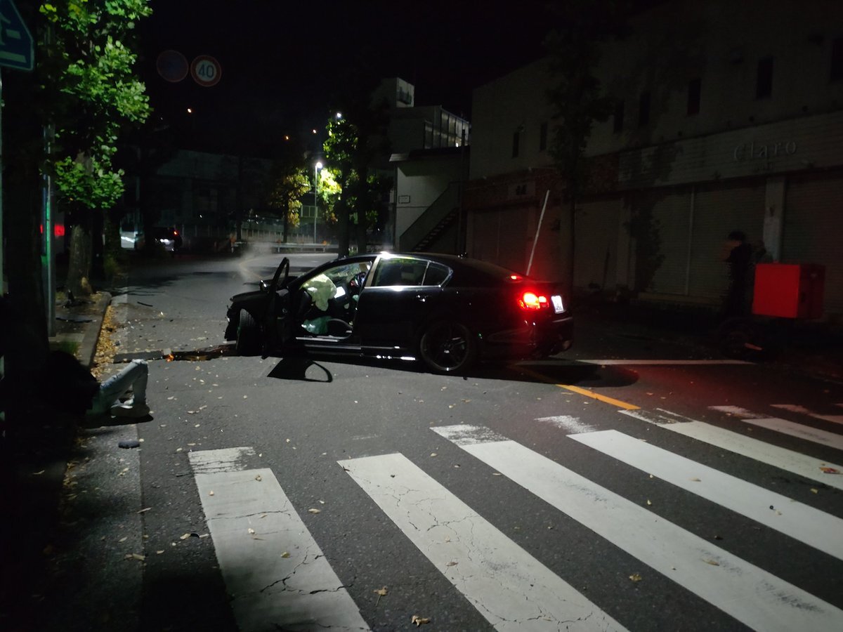 【現場の様子】#交通情報 神奈川県横浜市港南区丸山台付近 黒のレクサス大破事故 運転手同乗者がその場から立ち去る情報も11月12日 #横浜 #港南区 #丸山台