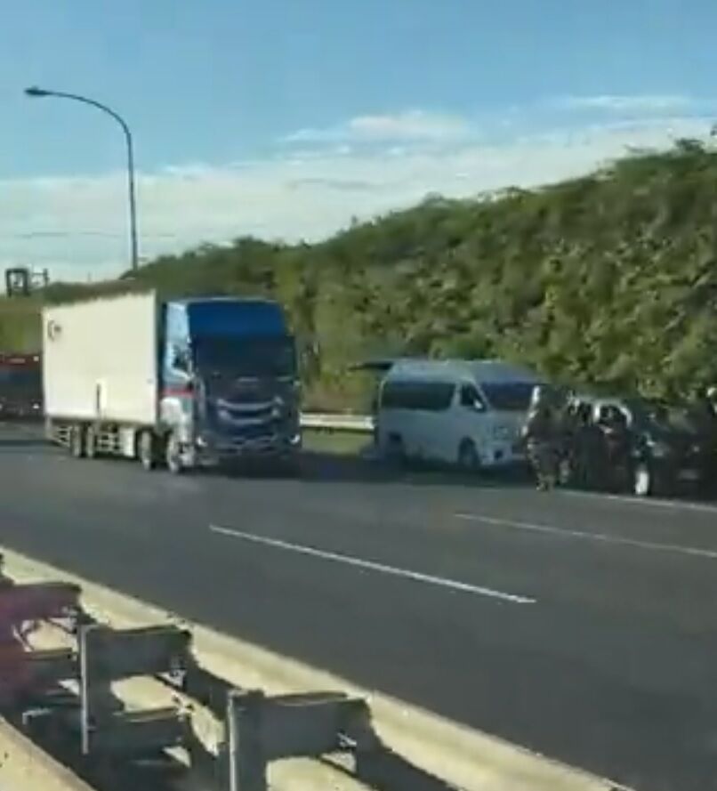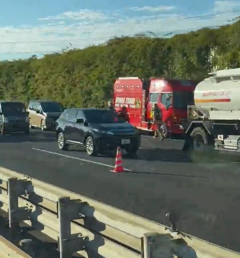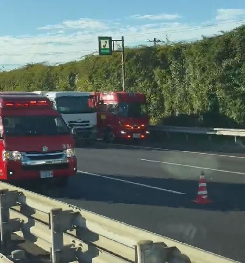 『関越道下り川越インター手前で事故、左右の車線に事故した🚙止まってて、真ん中しか通過出来ないみたいで結構な渋滞です』