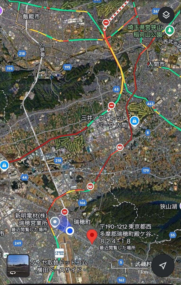 現在の入間市渋滞がやばいです。圏央道が通行止めになり、その影響で国道16号線が詰まり、さらにその裏道まで渋滞している状況です。