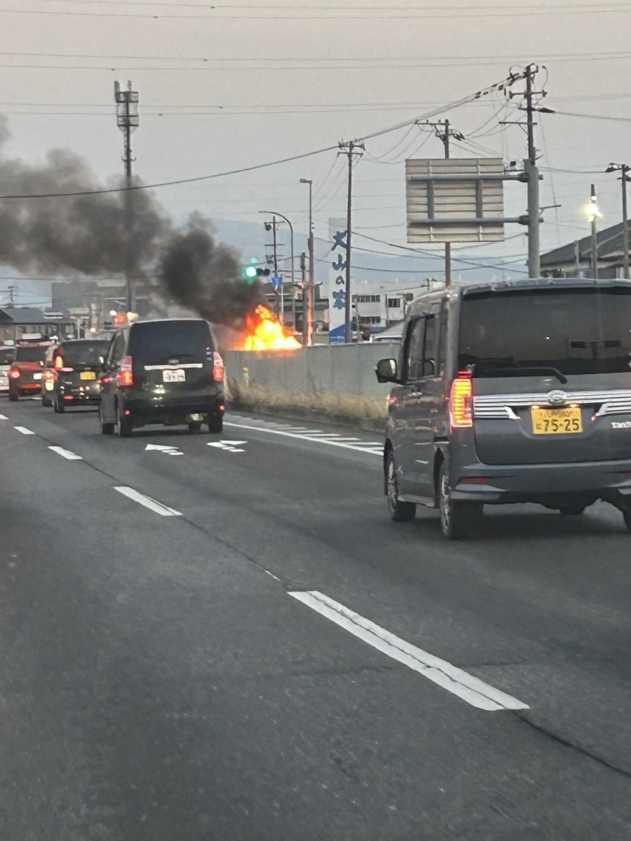 『45号線の北バイパスファミマ付近で車炎上してるっぽい』