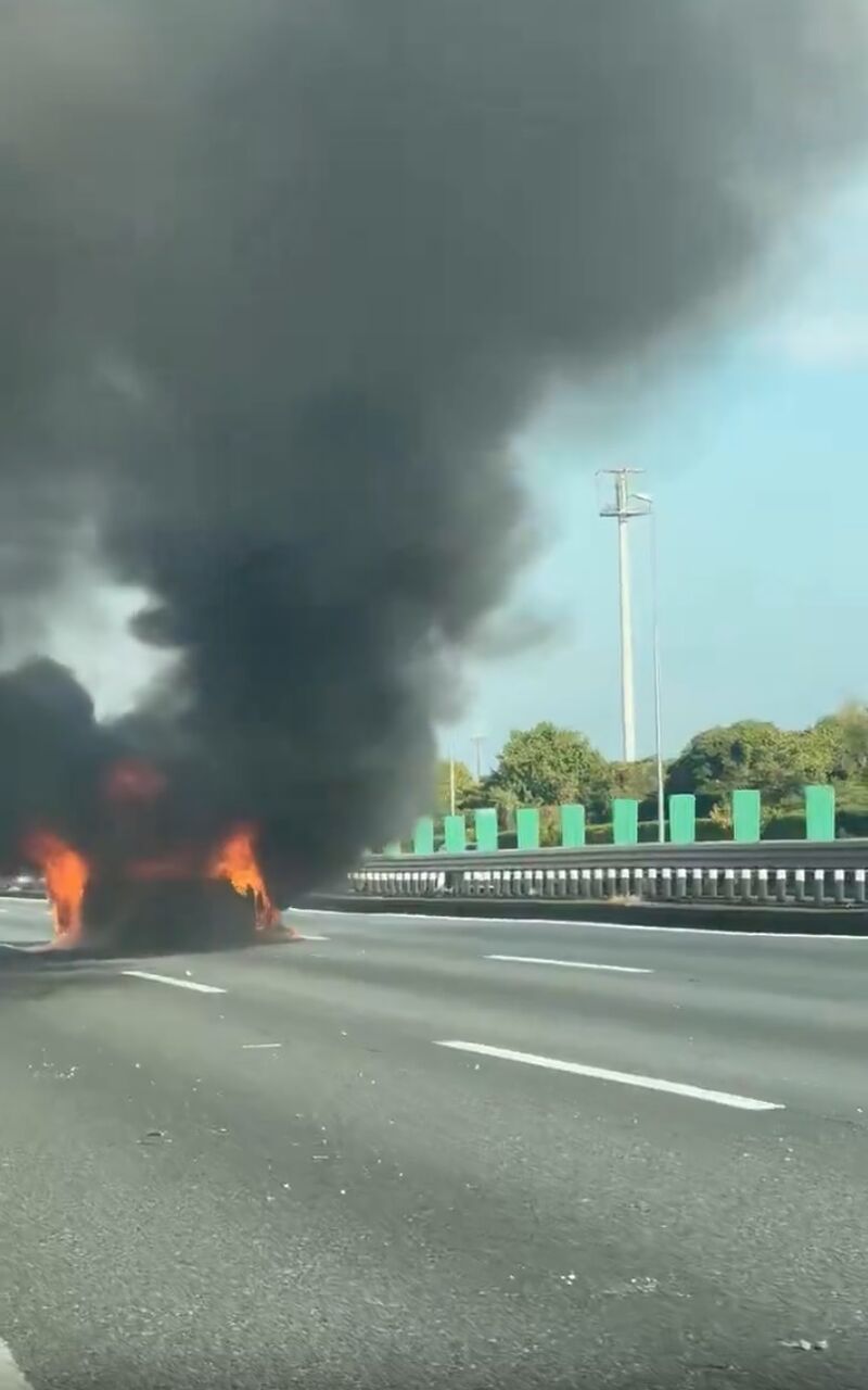 湾岸線、車燃えてて通行止めで飛行機間に合わん😩 pic.twitter.com/dSgxQmUVNi