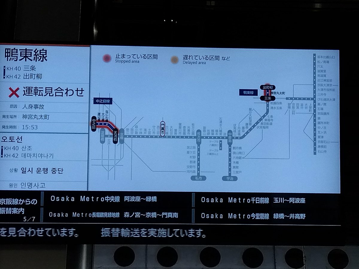 神宮丸太町で人身事故起きたみたい#京阪電車