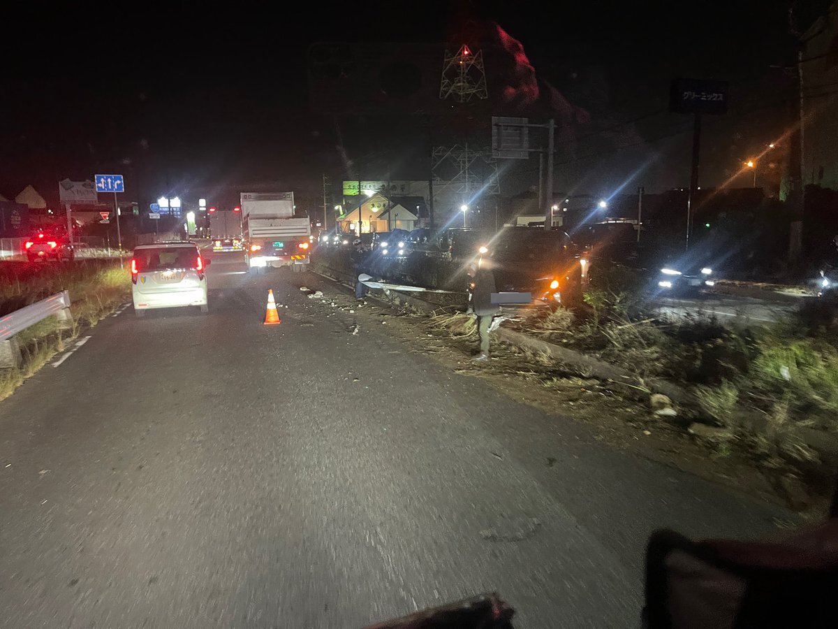 『ダンプと乗用車の事故 分離帯乗り上げてるから しばらくかかるなぁ』