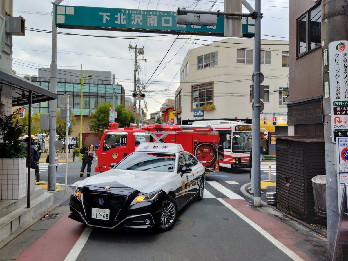 『下北沢朝からサイレンなってるけど、何かあったっぽい。しかも茶沢通り、代沢5丁目からタウンホール方面封鎖されてるっぽい』
