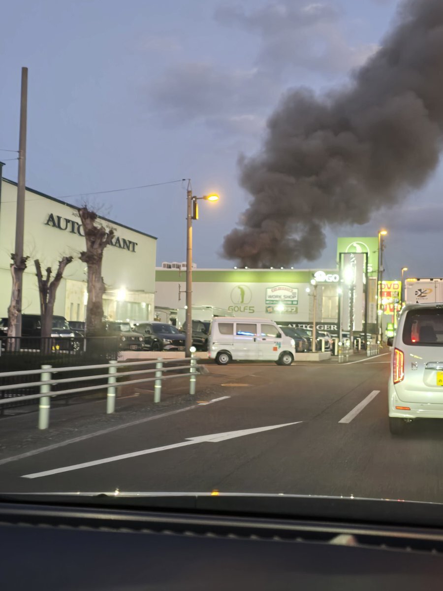 『バイパス沿いの青江あたりで火事!ジョリーパスタの近く。かなり燃えてる感じだった』