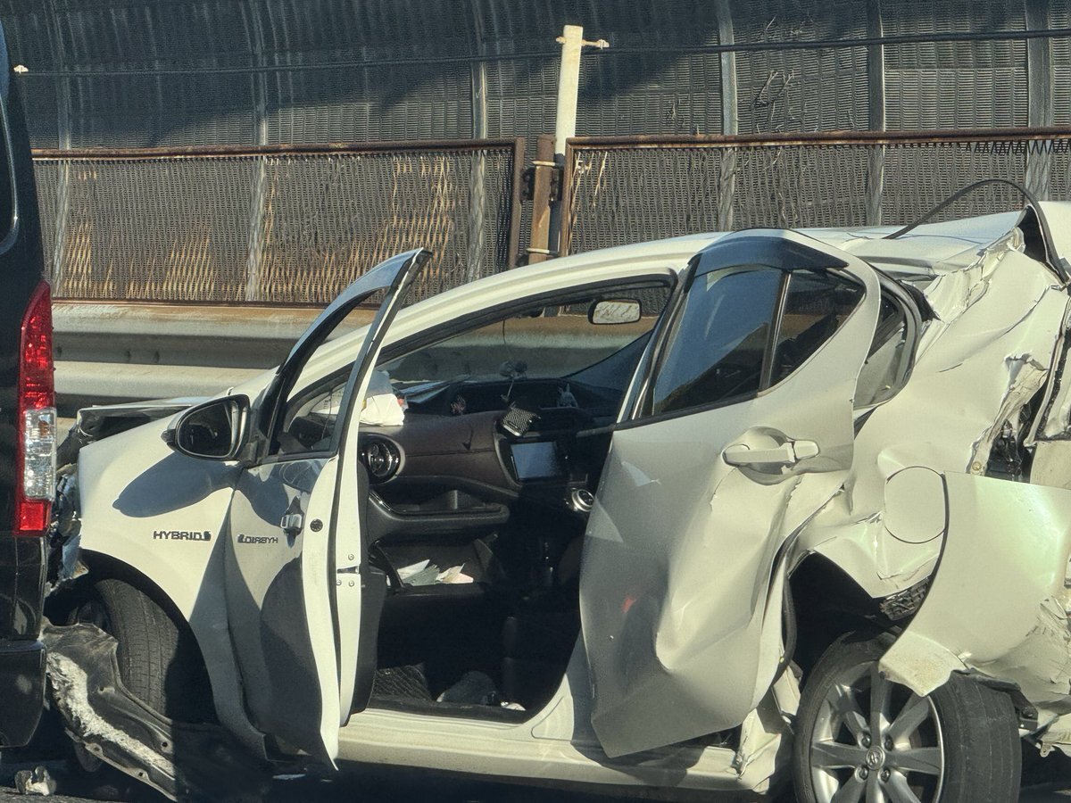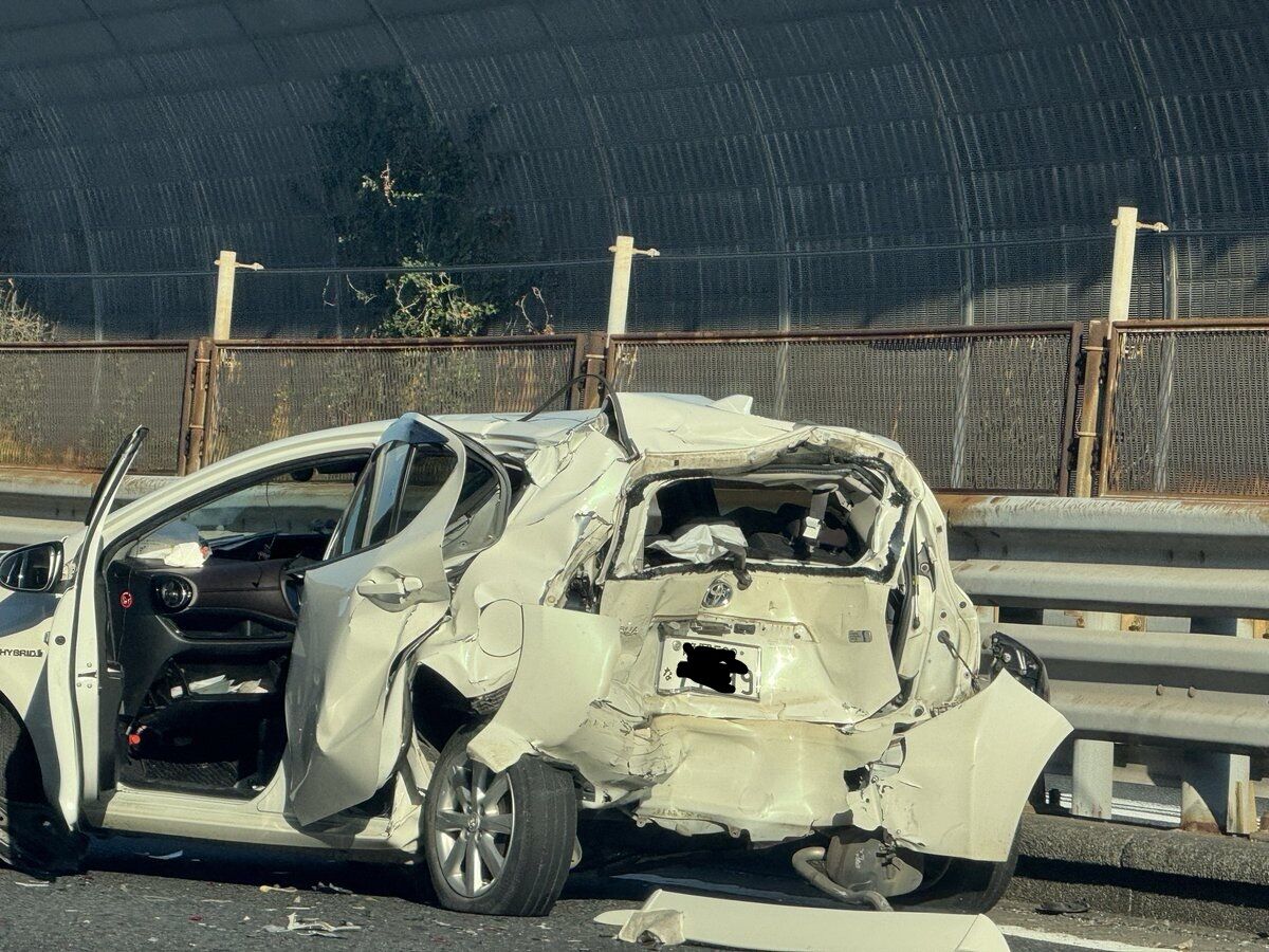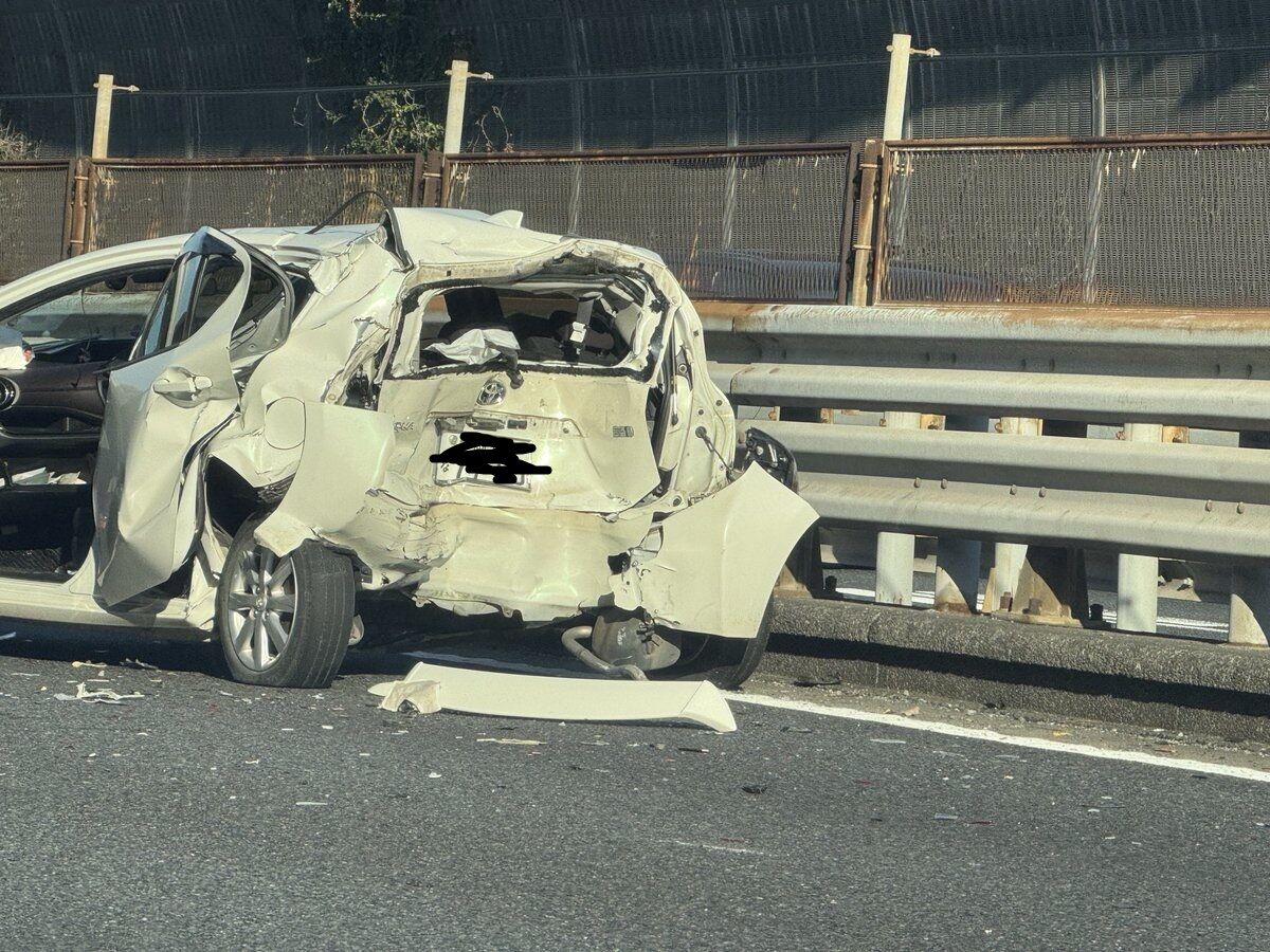 【現場の状況】#交通情報 東名高速 上り 秦野中井IC ~ 伊勢原JCT付近 破片散乱する乗用車大破事故で規制渋滞11月24日 #東名高速 #神奈川県 #秦野 #伊勢原 #3連休