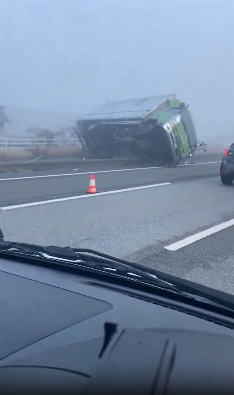 新4 下り 上三川手前でトラックが横転🚚#新4#上三川#事故 pic.twitter.com/ahQJ6j6XMd