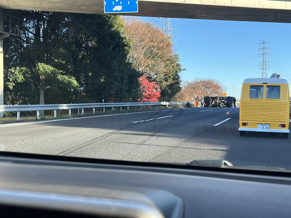 『常磐道下り友部JCT先、4トン?2トン?横転してます』
