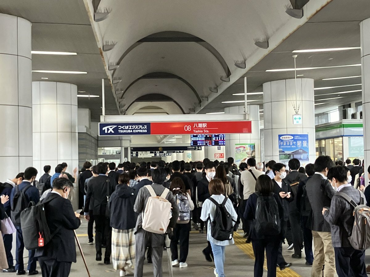 TX遅れが出ているようです。ホームはすごい人です😅皆さま、お気をつけて…。#TX守谷駅 pic.twitter.com/3r4juyXDOO