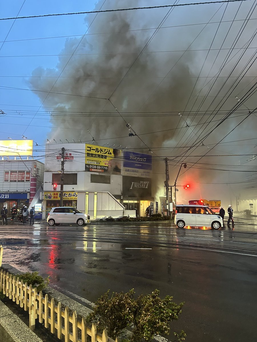 大変だ…五稜郭のアパマン付近火事だぁ…凄い規模なのかな?煙で前が見えない状態です。そしてシエスタも封鎖するみたいです。この付近の方ご注意下さい…#火災 #函館火事 #危険 pic.twitter.com/zeOUh64Sif