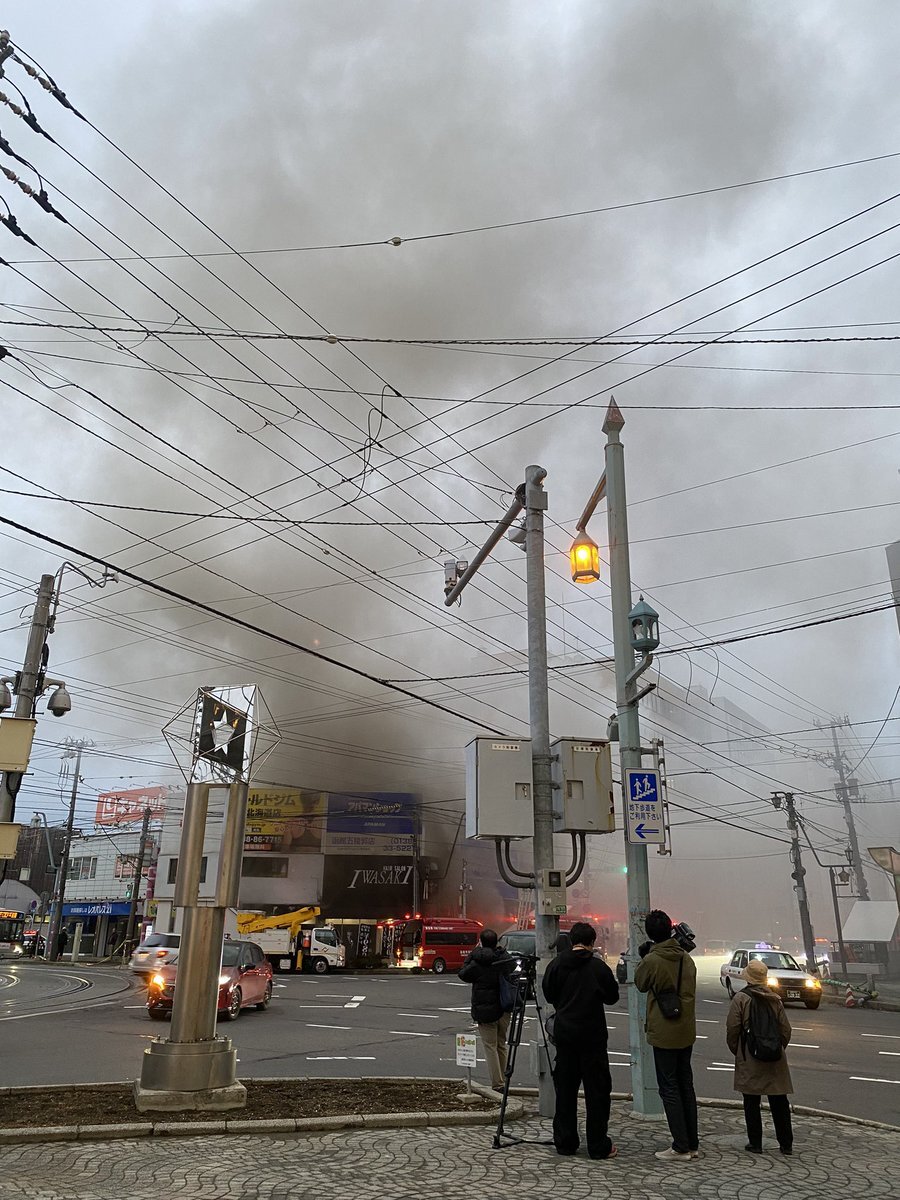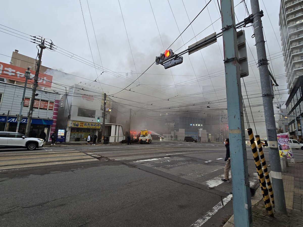函館丸井今井交差点付近で火災の為交通障害が発生しています。運転に気をつけて下さい。最近火災に出くわします。 pic.twitter.com/EbuMau5BTa