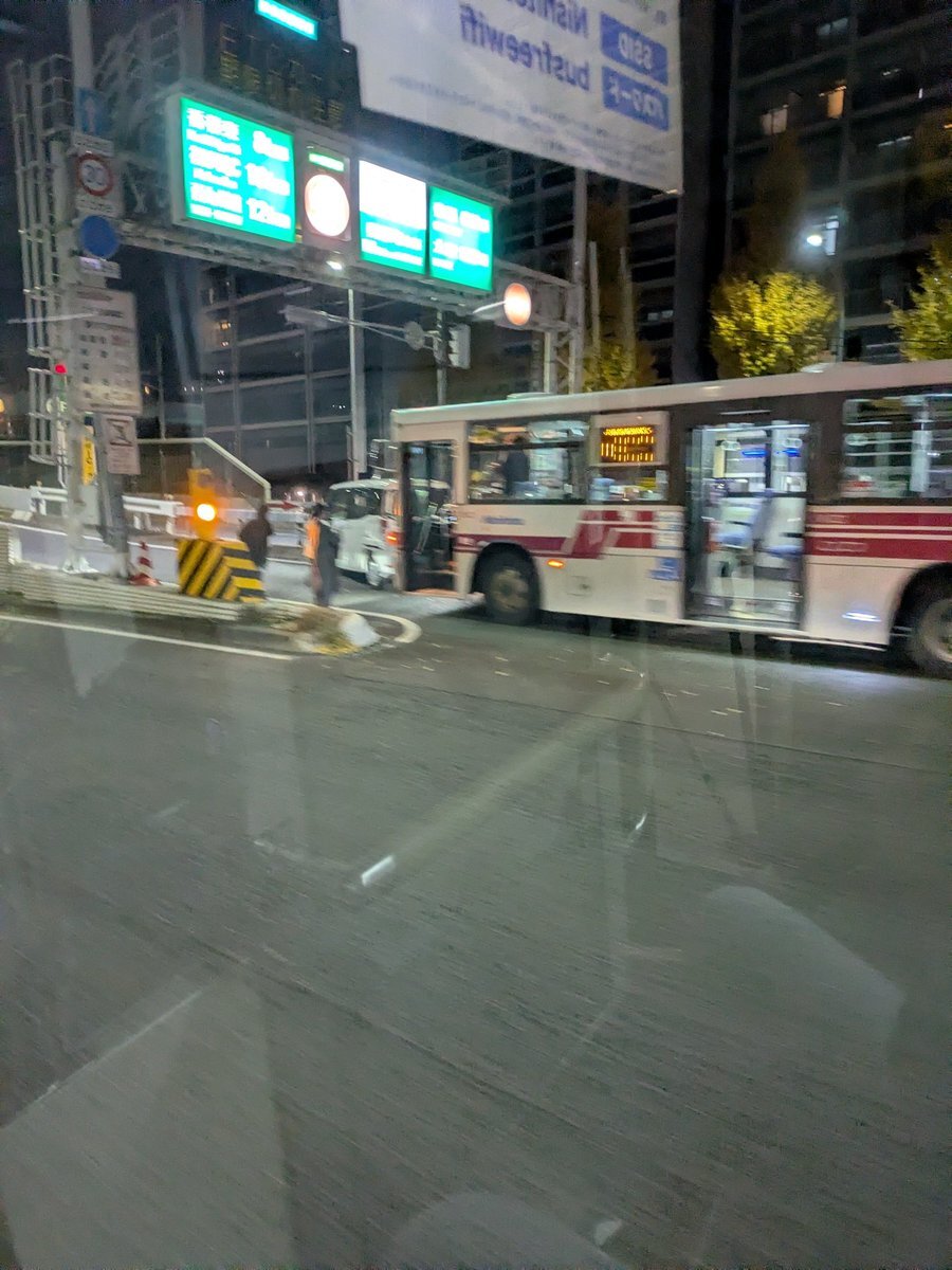 【現場の様子】#交通情報 福岡県福岡市博多区下呉服町 福岡都市高速入口付近 乗用車とバスの衝突事故で一部交通規制12月2日 #福岡 #博多 #バス