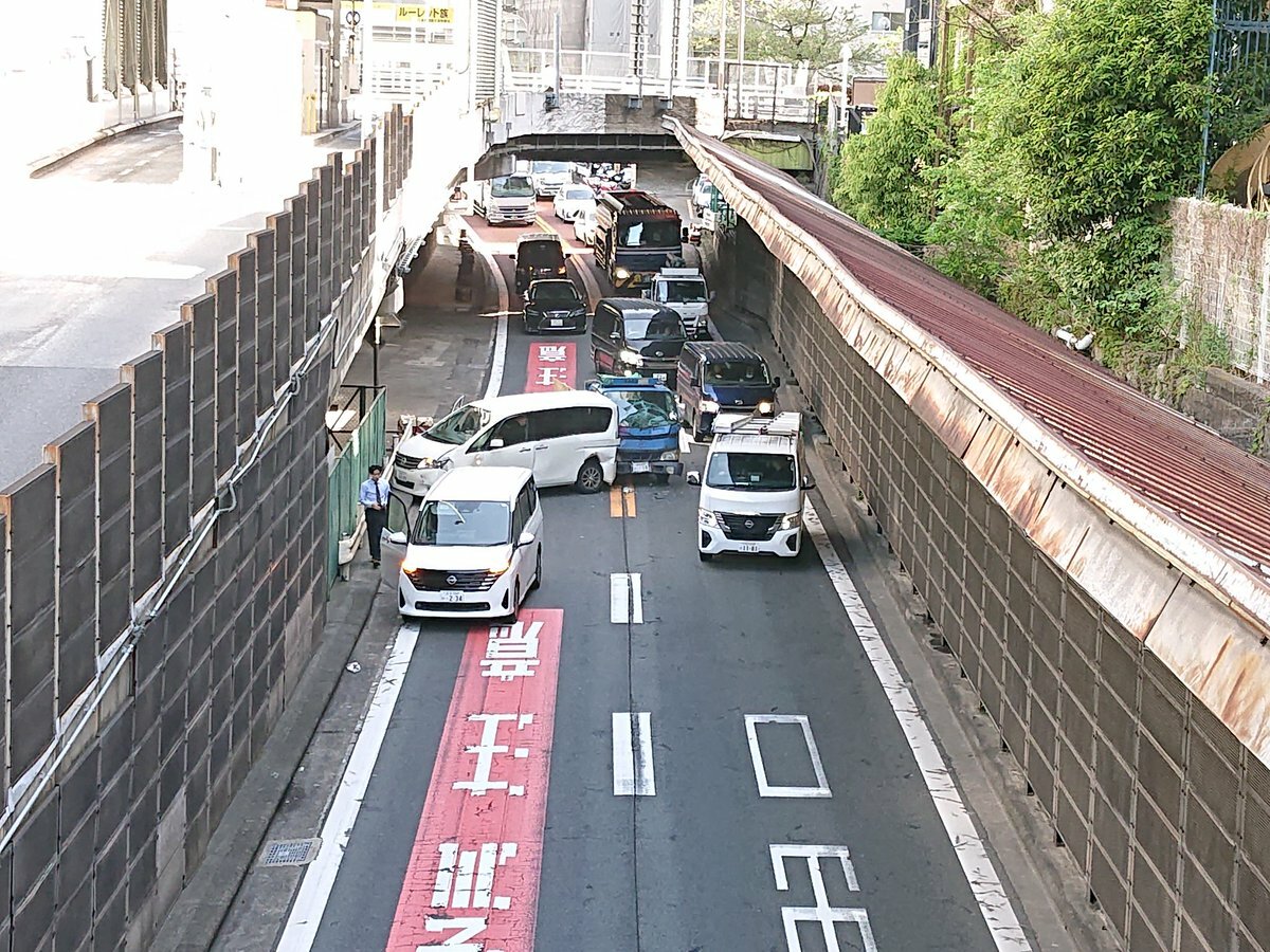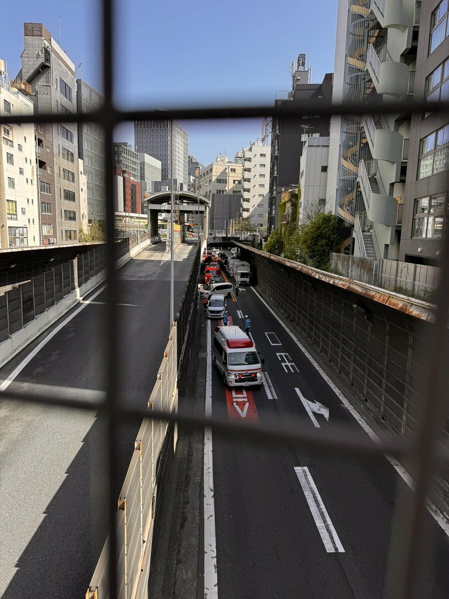 首都高速、新富町出入り口付近で事故です😱 pic.twitter.com/LnoRmVuZ6L