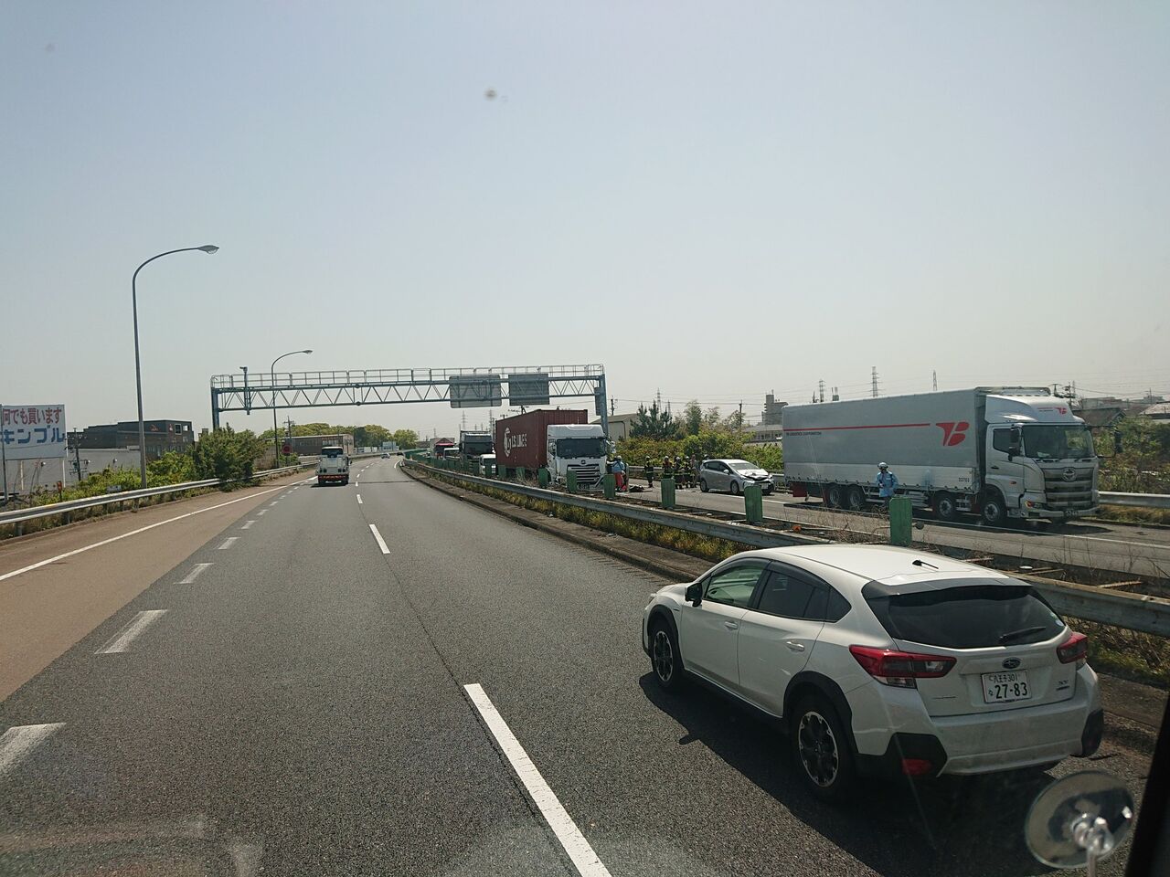 【現場の様子】#交通情報 #東名高速 下り 小牧IC付近 大型トラック乗用車追突事故、軽自動車横転事故で規制渋滞4月19日 #渋滞 #東名 #愛知 #小牧 #名古屋