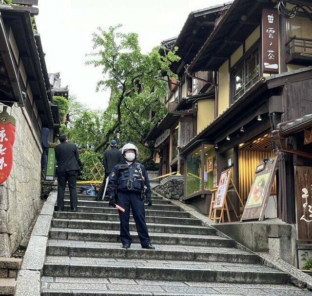 【現場の様子】#注意喚起 京都府京都市東山区産寧坂松原上る入清水3丁目 清水寺西側付近 産寧坂で倒木事故 1人が下敷き4月23日 #京都 #産寧坂 #清水寺