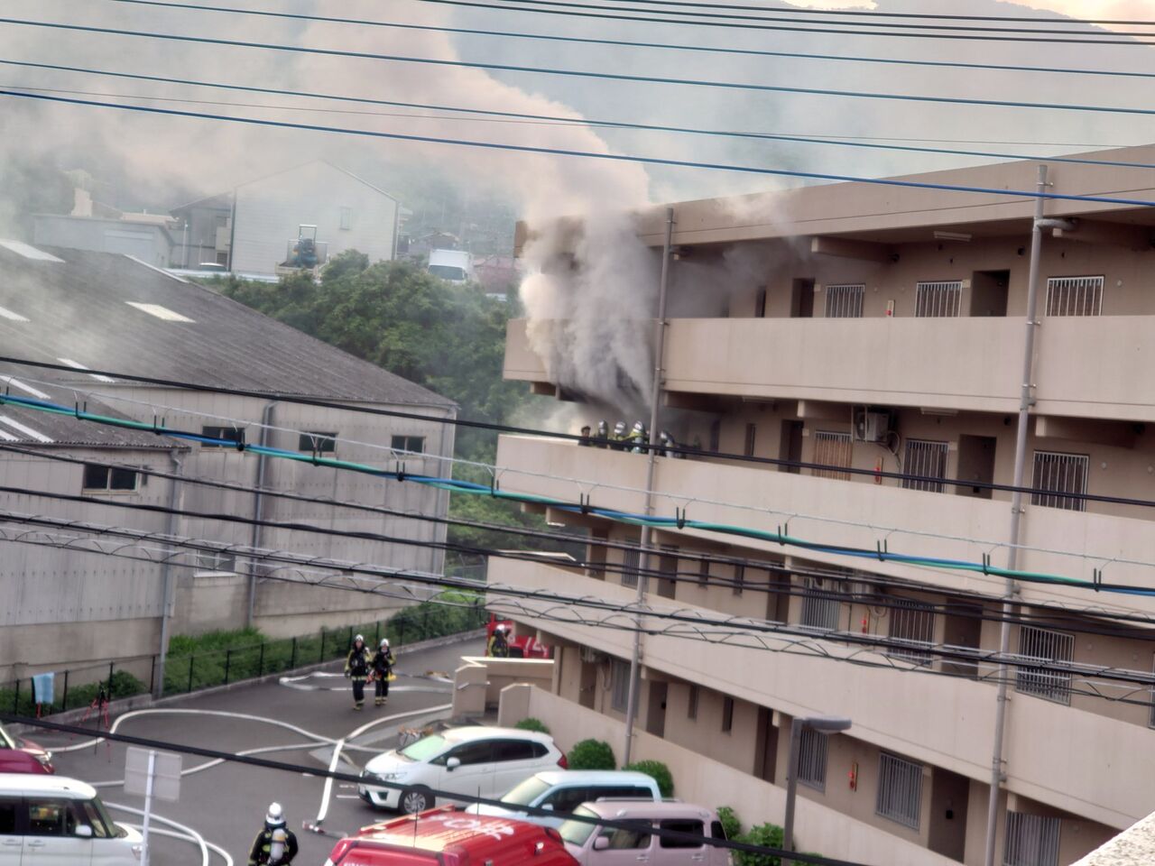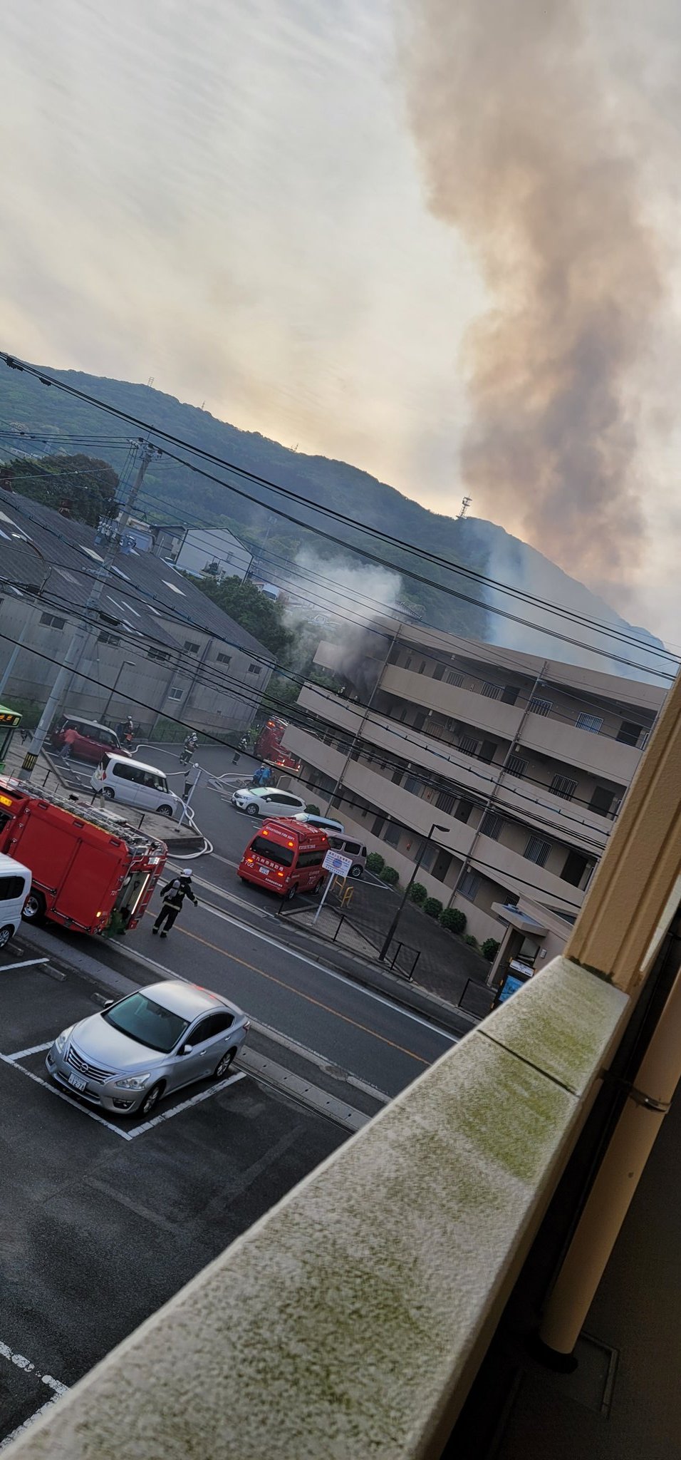 【火事情報】福岡県北九州市若松区片山2丁目1番付近 集合住宅マンションから煙あがる火災4月26日 #福岡 #北九州 #火災