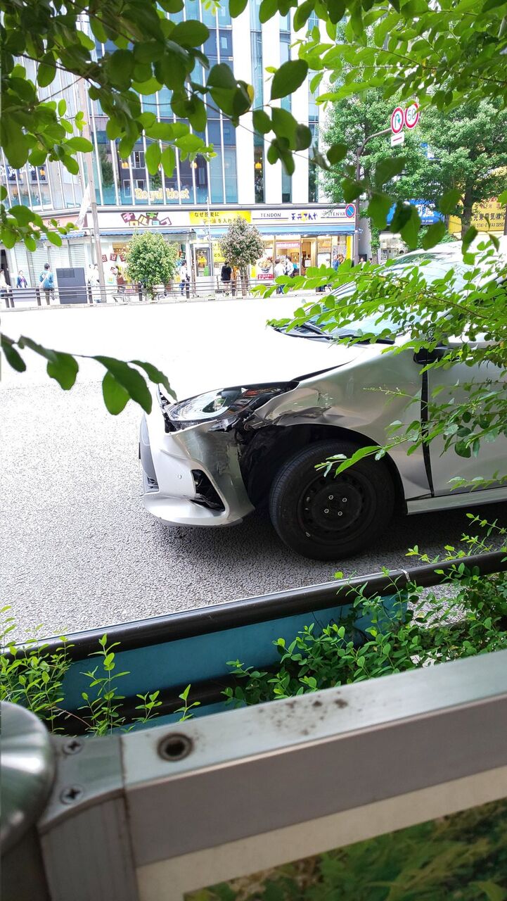 たった今、本店から大通りに出たとこで乗用車とタクシーの事故に遭遇🚘