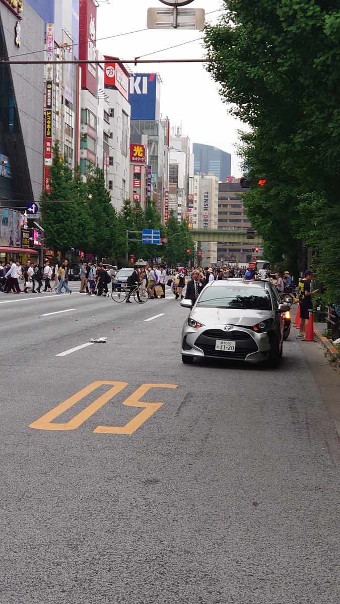 【現場の様子】#交通情報 中央通り 東京都千代田区外神田3丁目付近 破片散乱するわナンバーヤリスとタクシー衝突事故4月29日 #秋葉原 #akiba #ゴールデンウイーク