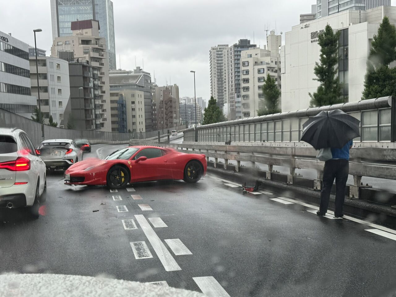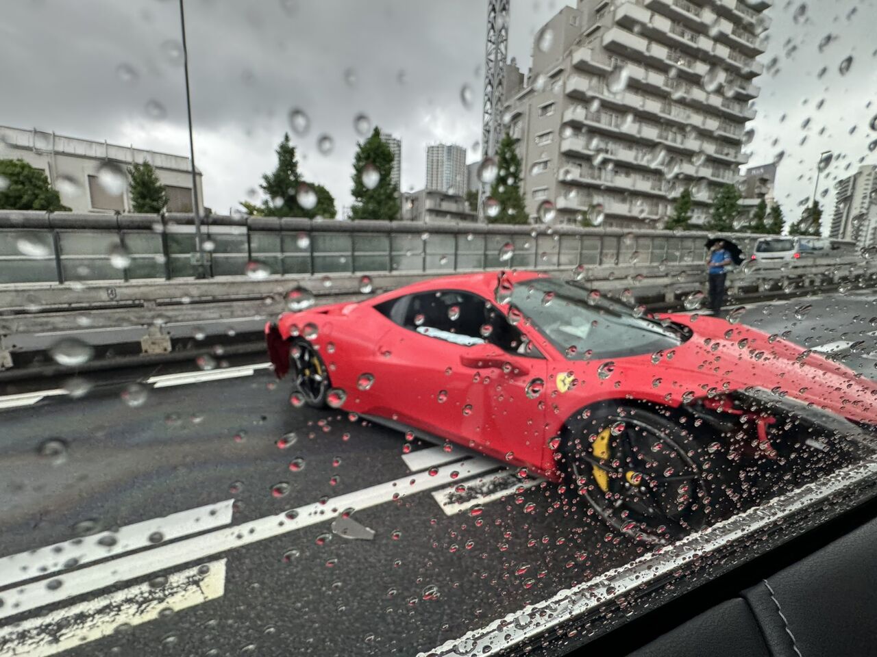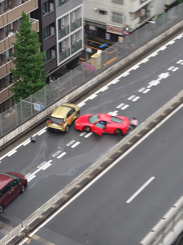目黒と荏原の間あたりで事故ってるフェラーリいた pic.twitter.com/KYg8TGCb30