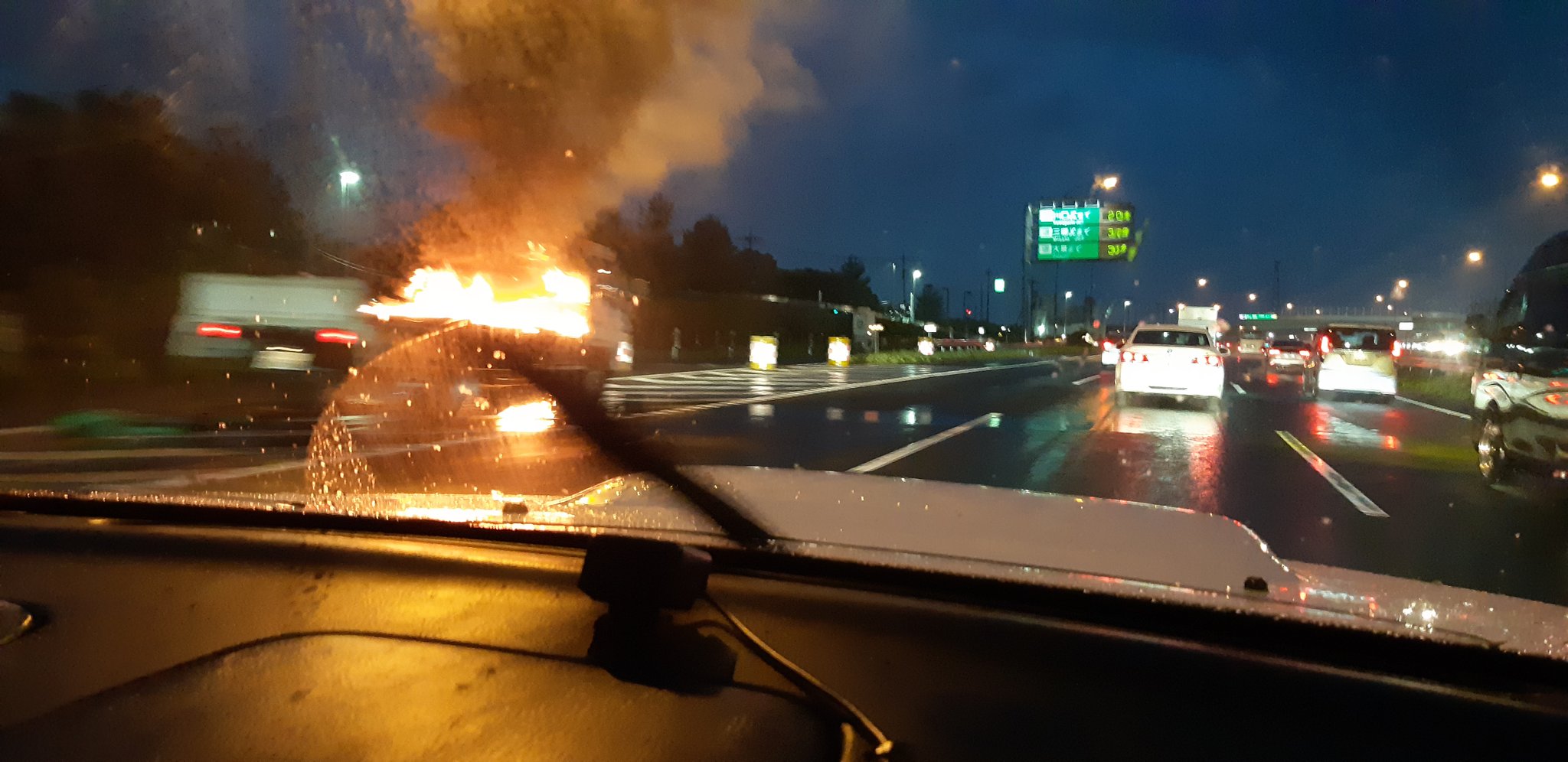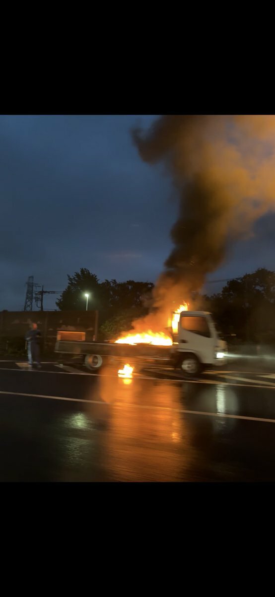 蓮田手前でトラック燃えてた😱
