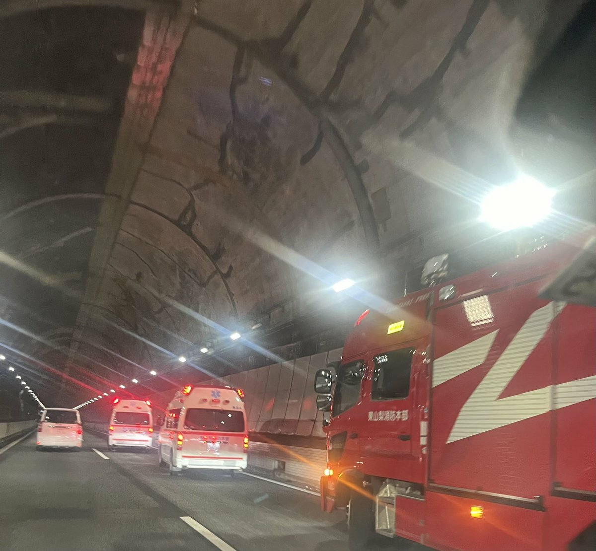 中央道トンネル内事故の模様。何やってくれてんだよ…せめて人命にかかわることでないことを祈る。じゃないと巻き込まれたみんなも救われない。#笹子トンネル