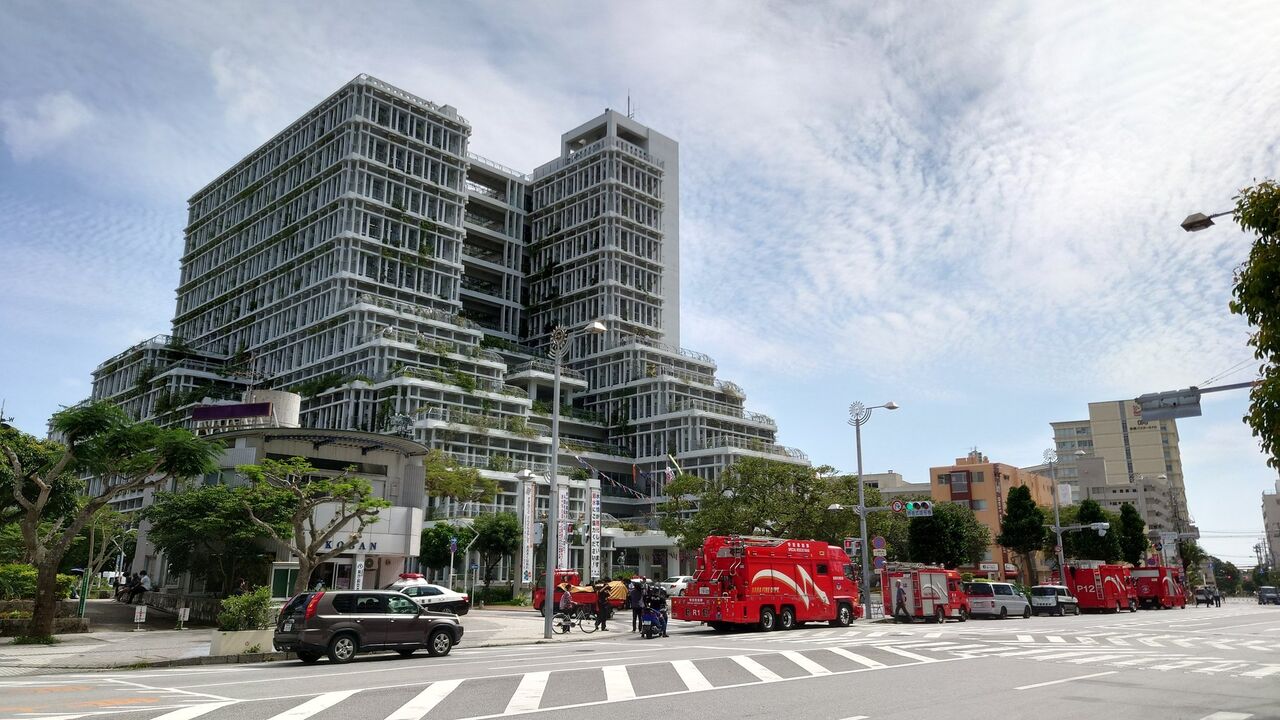 那覇市役所で不審なスーツケースが見つかり、現在庁舎内立ち入り禁止とのこと。