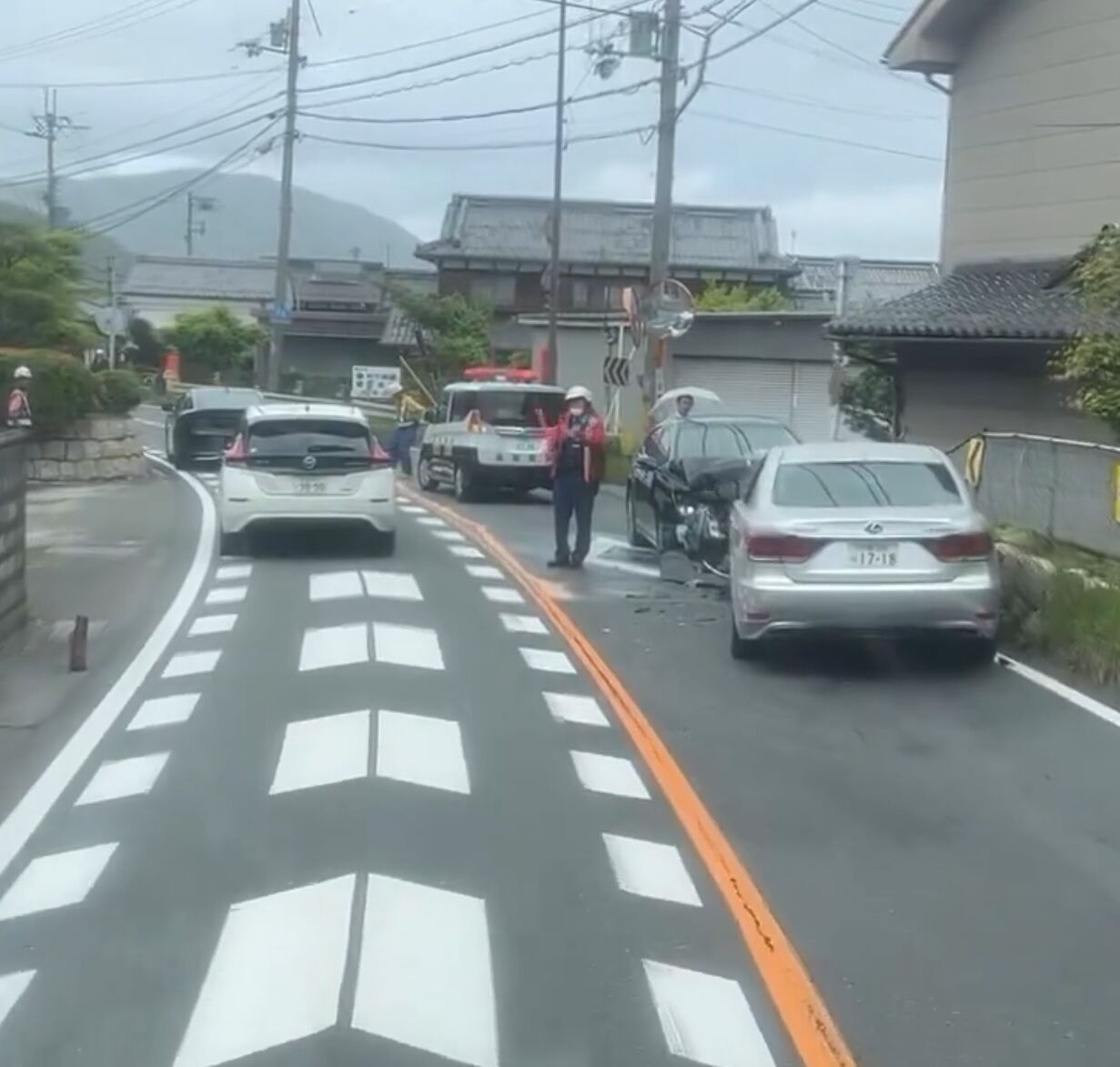 乗用車同士の正面衝突。上り側が思いっきり反対車線飛び出してたどうしそうなるんや』