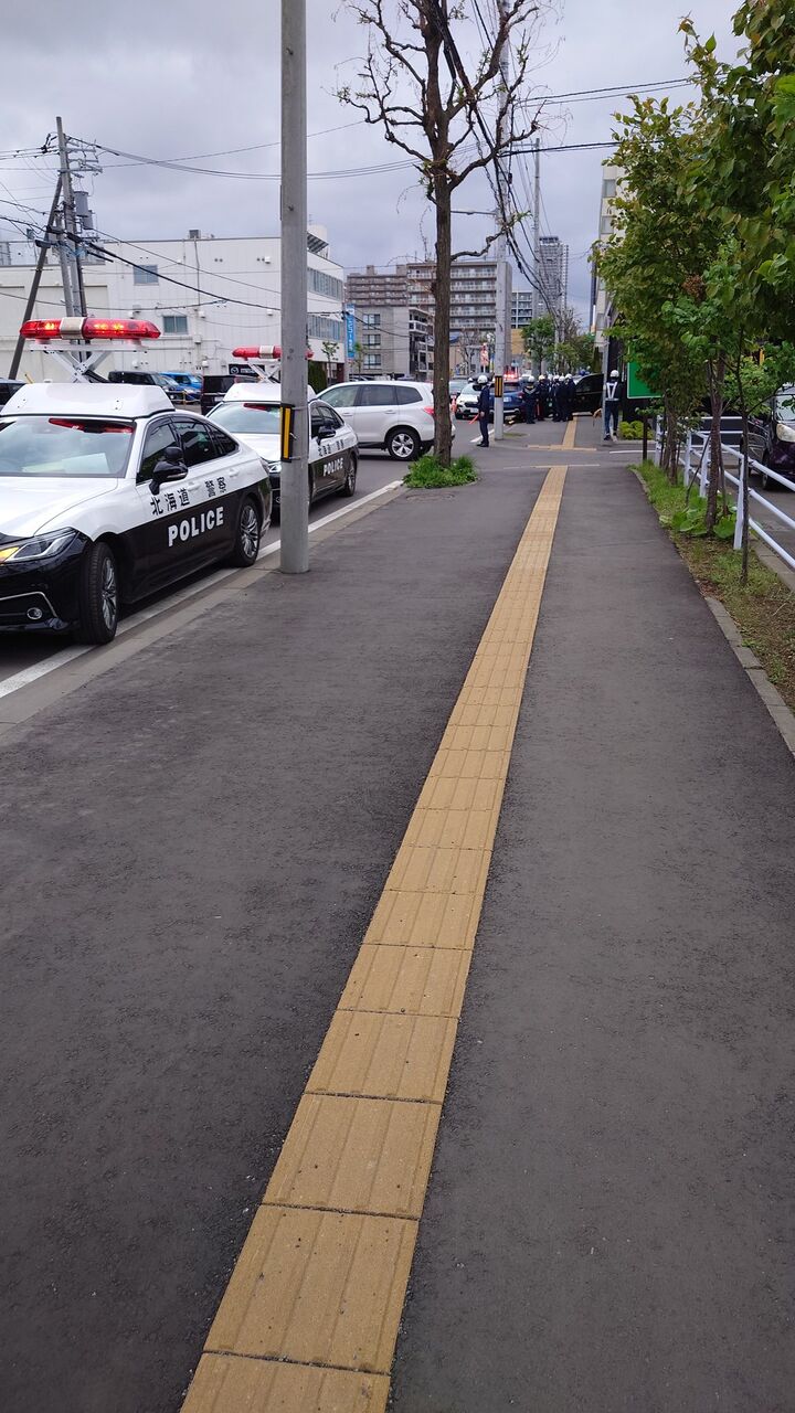 【現場の様子】#交通情報 札幌市西区二十四軒3条1丁目 北海道マツダ販売琴似店に自動車突っ込む事故 周辺道路規制渋滞5月8日 #札幌 #MAZDA