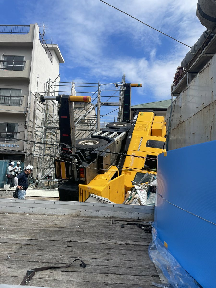 クレーン倒れた。怪我人はおりません。 pic.twitter.com/Xp64xpzSgI