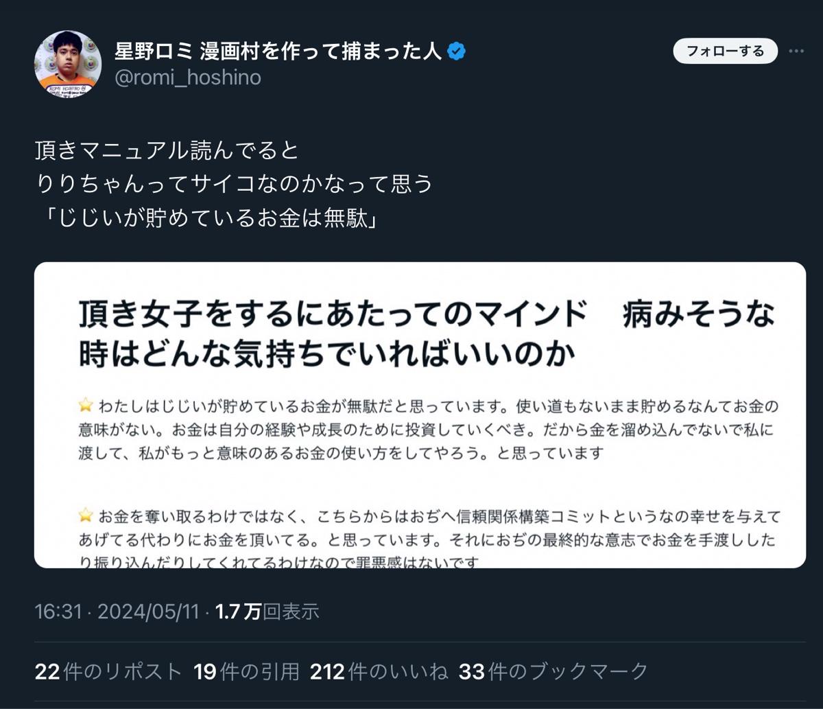 【正論】頂き女子りりちゃん「60歳過ぎた弱者男性が金を貯め込んでも無駄」←反論できる?🤔 2024/5/11 速報 1: document.write(” + ”); 関連記事 document.write(” + ”); 続きを読む ——— Source: アルファルファモザイク 【正論】頂き女子りりちゃん「60歳過ぎた弱者男性が金を貯め込んでも無駄」←反論できる?🤔