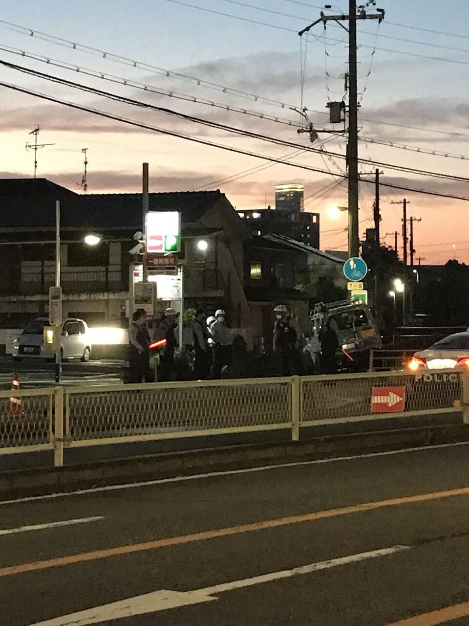 【現場の様子】#交通情報 今里筋 大阪市東住吉区中野3丁目フォルクス付近 橋にジープ突っ込む事故で規制渋滞5月13日 #渋滞 #大阪 #東住吉
