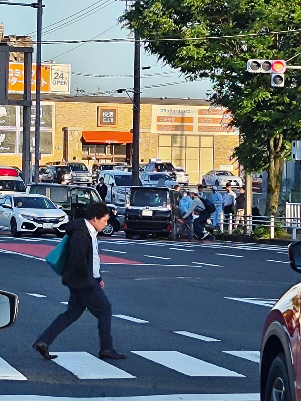 【現場の様子】#交通情報 県道491号 愛知県豊田市土橋町1丁目メガドンキ快活クラブ付近 ポルシェなど車両3台絡む衝突事故で車線規制渋滞5月16日 #愛知 #豊田